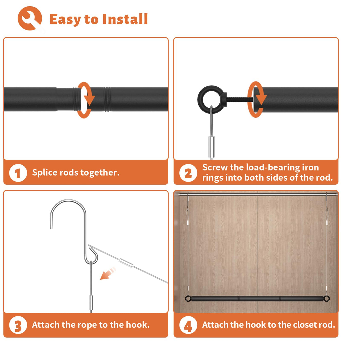 - Q: How do I install the Qufiona Closet Hanging Rod? A: Installation is straightforward and can typically be completed within 2 minutes by following the concise instructions provided. No complicated tools or professional skills are needed.