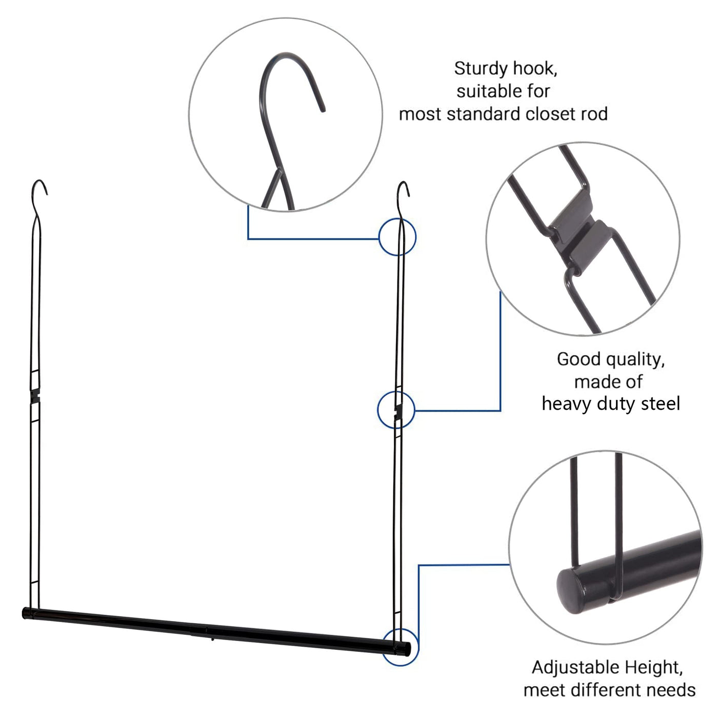 - Q: What is the overall benefit of using the STORAGE MANIAC Hanging Closet Rod? A: The STORAGE MANIAC Hanging Closet Rod provides a practical solution for organizing your closet efficiently by maximizing space, offering adjustable features, and being easy to install.