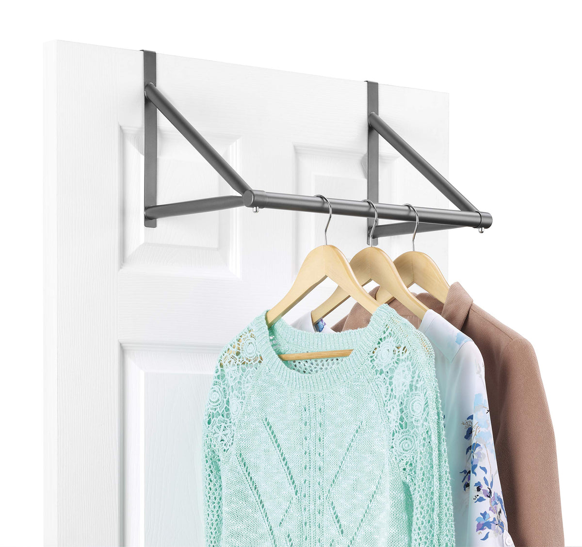 • Q: What are the dimensions of the clothes hanging rack? A: The dimensions of the Whitmor Over The Door Hanger are 18.0 x 10.0 x 10.0 inches.