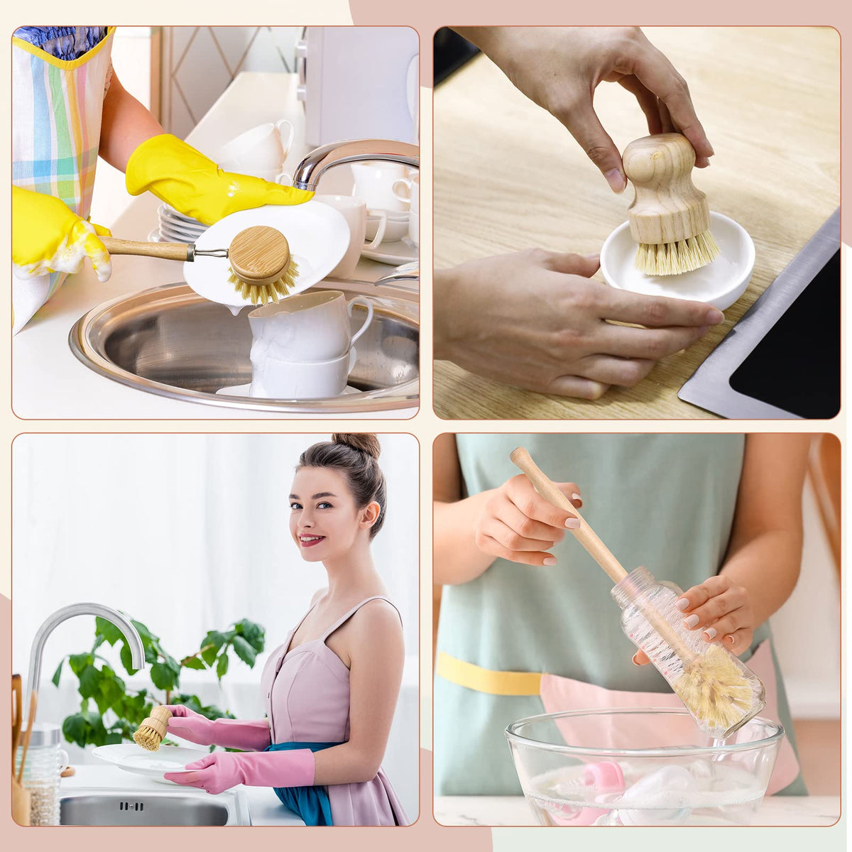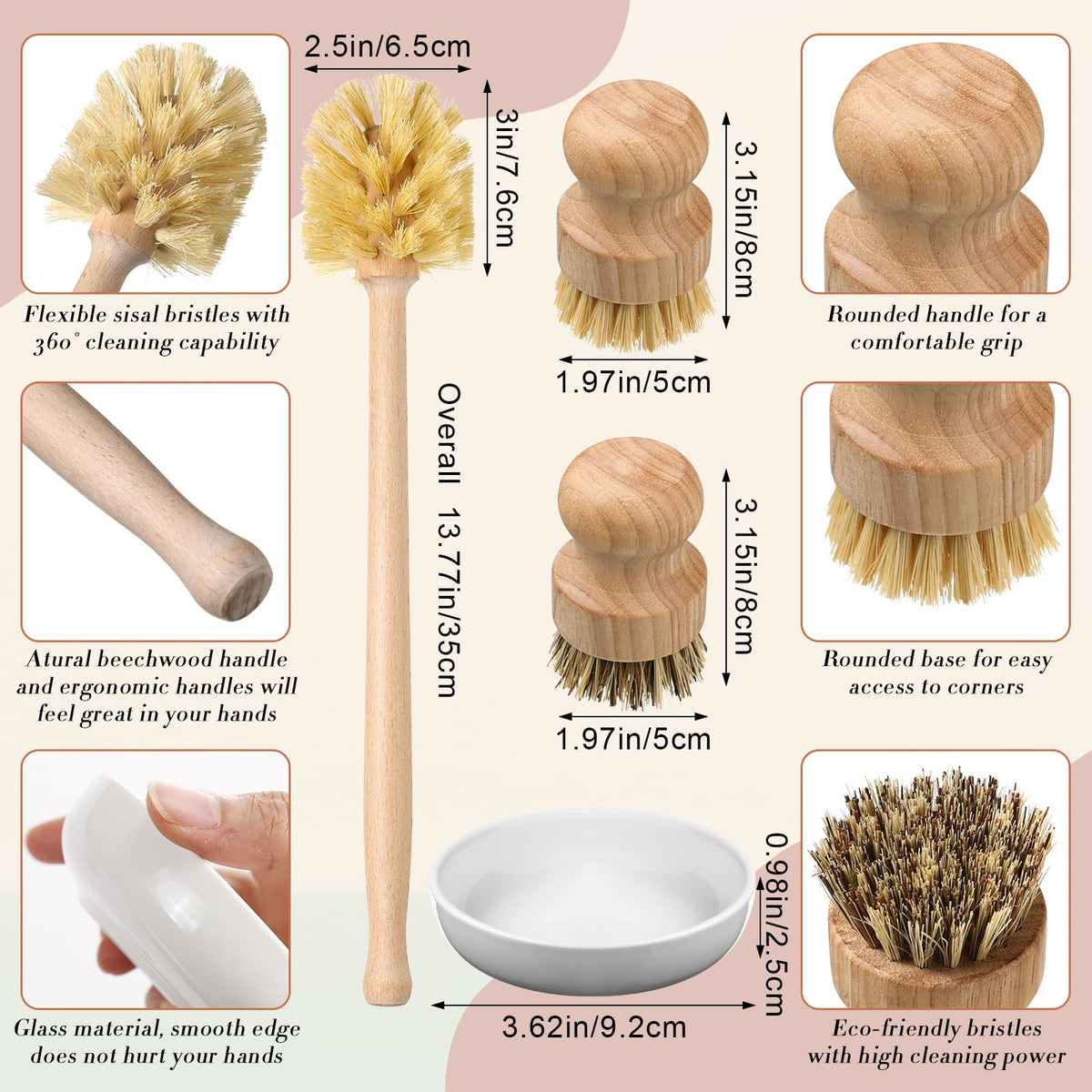 10 Pieces Wooden Dish Brush Set Bamboo Dish Brush Wood Bottle Brush With Replacement Heads For Dishes, Wide Mouth Bottles, Cups