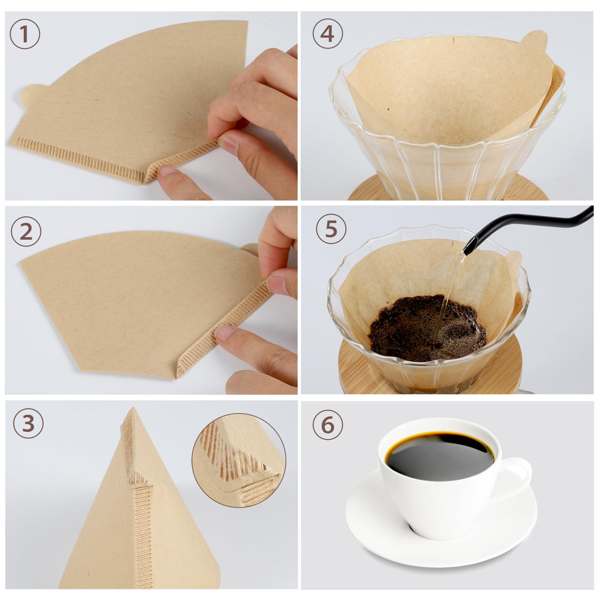 - Q: How do I use these coffee filters correctly? A: To use the unbleached coffee filters, fold them first before placing them in the filter cup. It's recommended to moisten the filter with hot water before use to ensure a better fit.