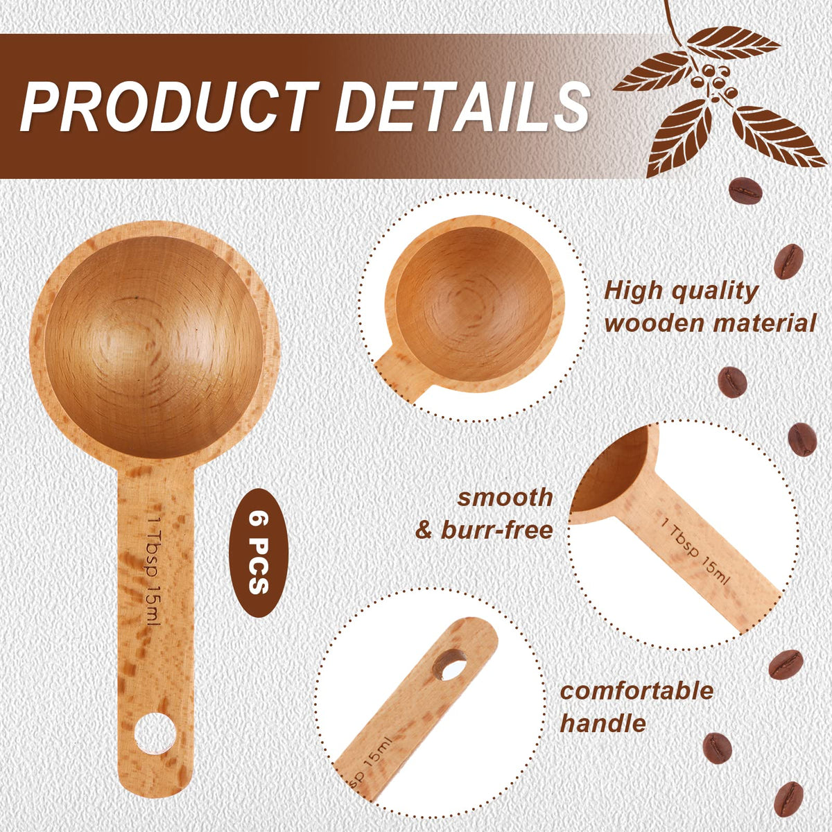 6 Pieces Wooden Coffee Spoon In Beech Measuring Scoop For Coffee Beans Wood Table Spoon For Whole Beans Ground Beans Or Tea, Hom