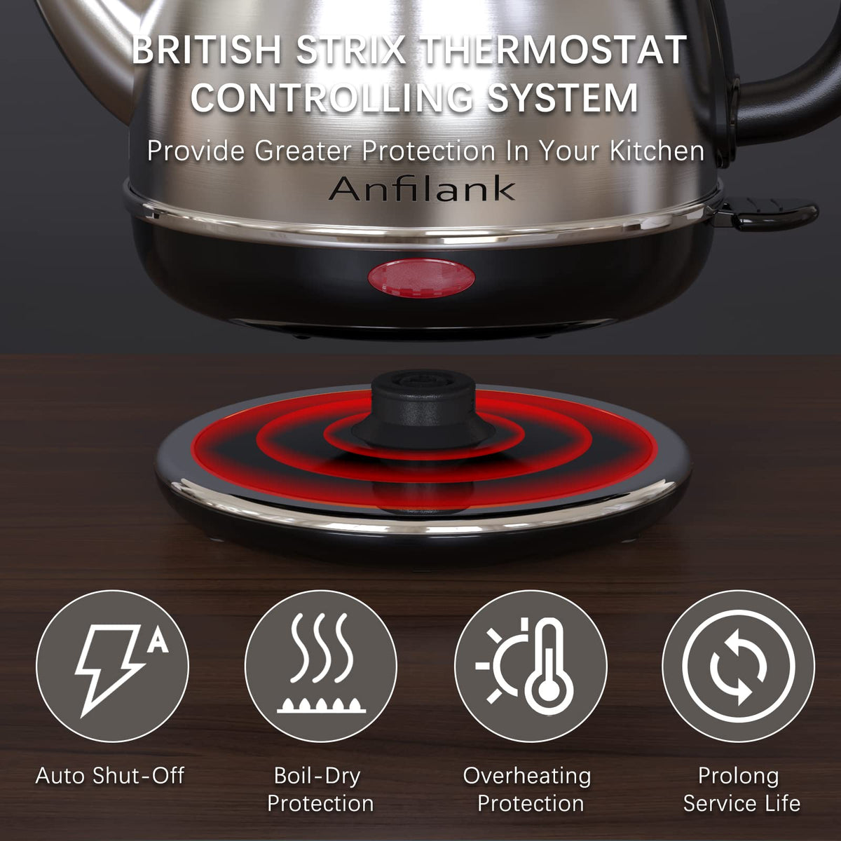 - Q: Is the Anfilank kettle safe to use? A: Yes, the kettle features automatic shut-off and boil-dry protection, which ensures it stops working when the water reaches a boil or when there is no water inside, preventing damage.