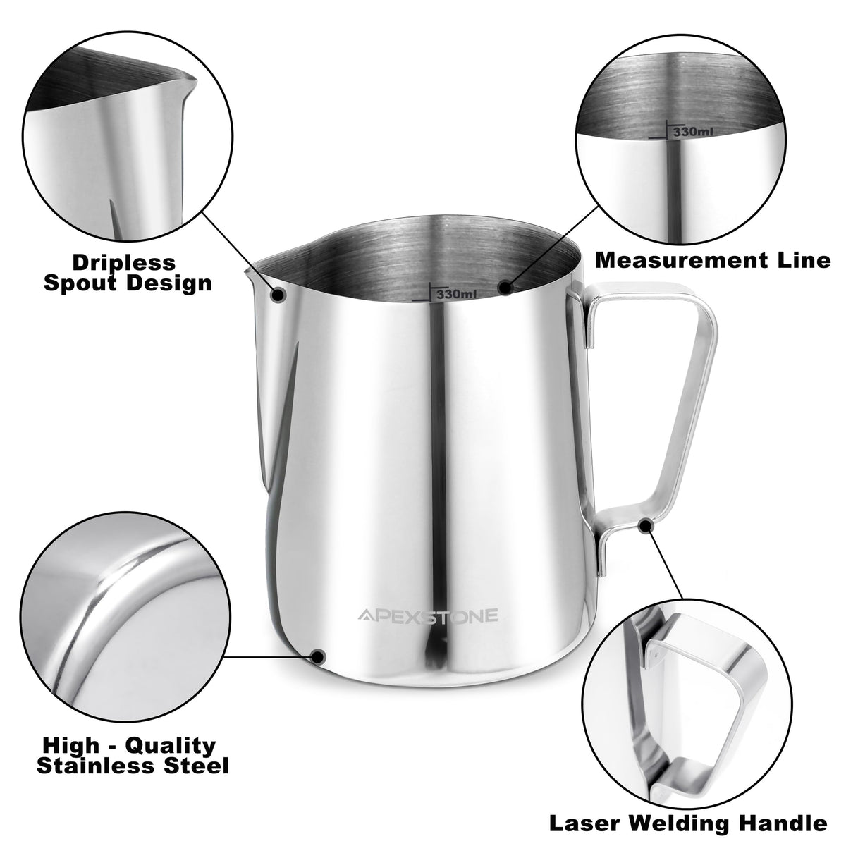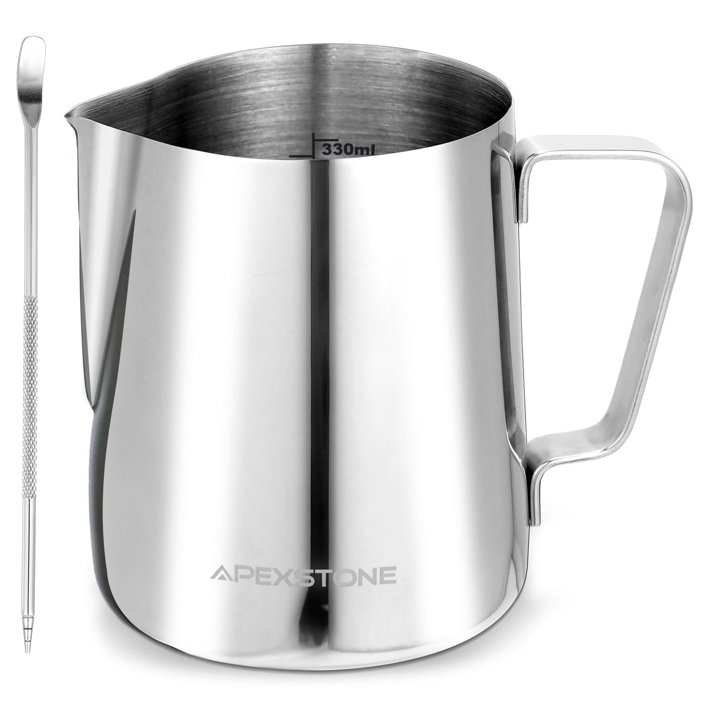 - Q: What is the capacity of the Apexstone Espresso Steaming Pitcher? A: The Apexstone Espresso Steaming Pitcher has a capacity of 12 ounces or 350 milliliters.