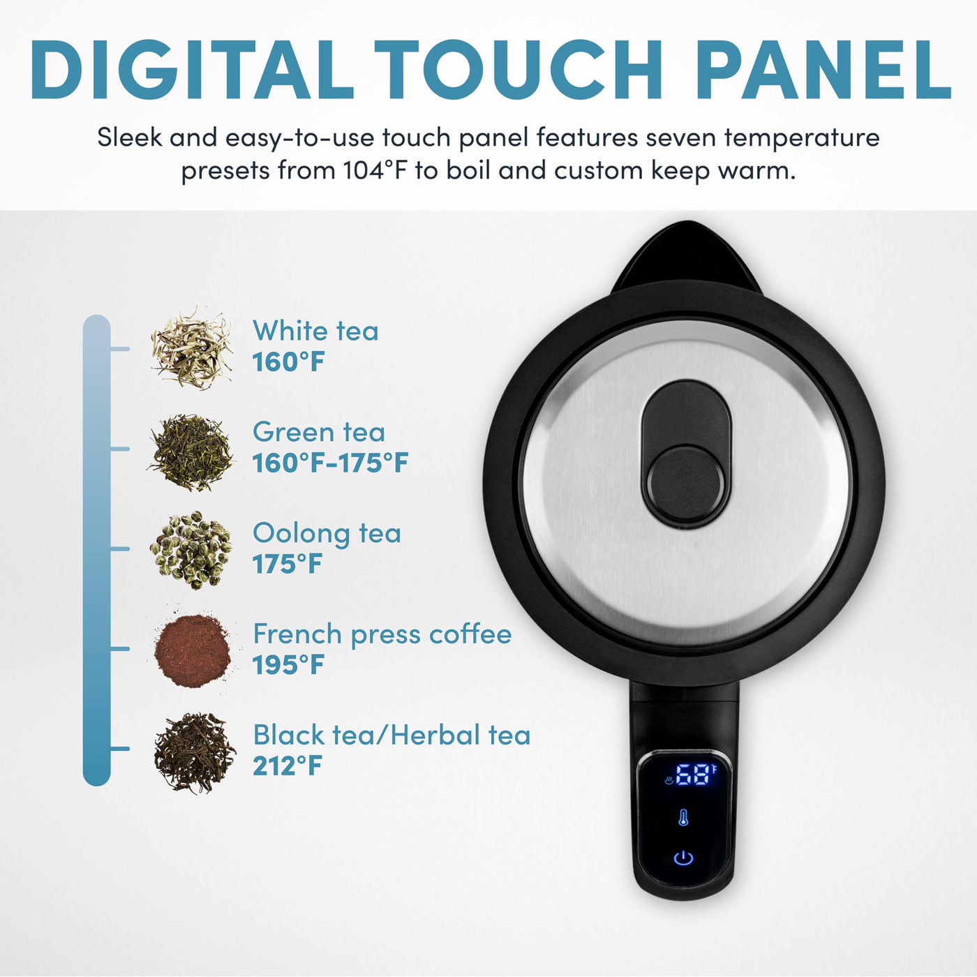 • Q: Can I control the kettle with one hand? A: Yes, the digital touchscreen is located on the stay-cool handle, allowing you to operate the kettle with one hand.