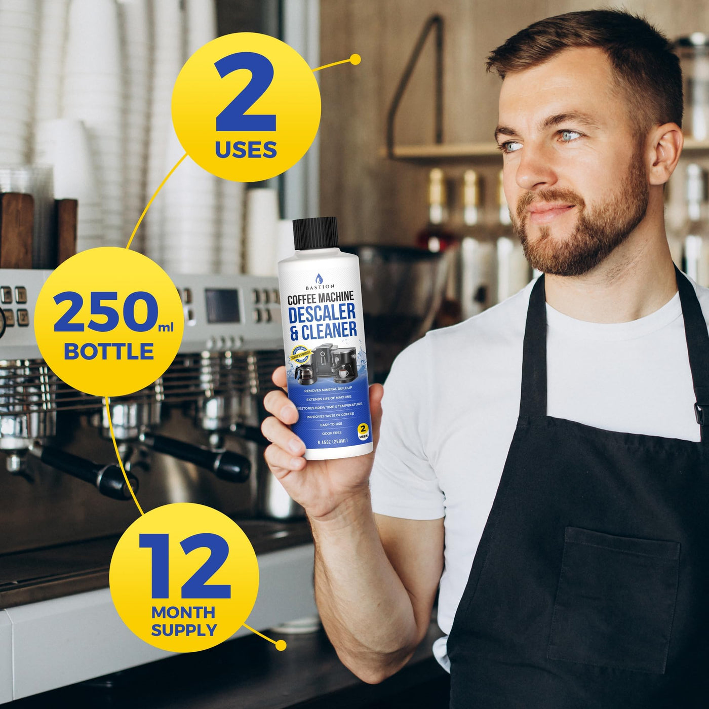 - Q: How many uses can I get from one bottle of the descaler? A: Each bottle of the Bastion Coffee Machine Descaler provides up to four uses, making it a cost-effective solution for maintaining your coffee machine.