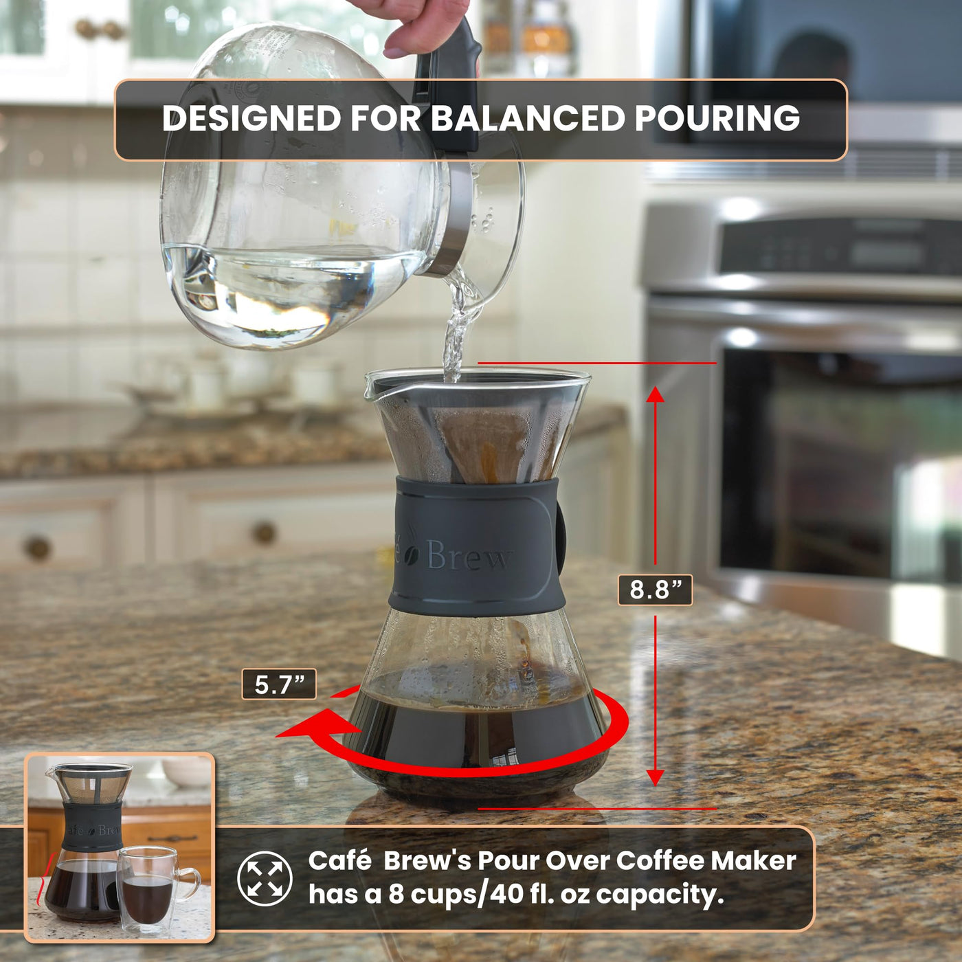 Caf Brew Collection Pour Over Coffee Maker - 40 Oz Borosilicate Glass Coffee Pot - Bpa-Free - Dishwasher Safe - Mindful Coffee