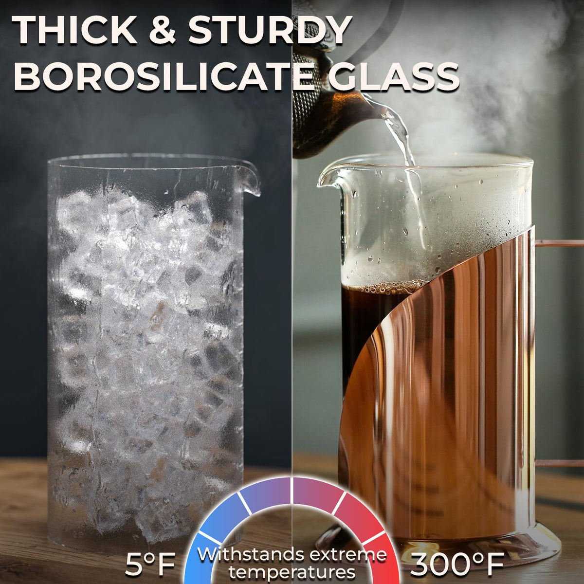 - Q: Is there a warranty for the French Press? A: Yes, the glass French Press coffee maker is covered by a lifetime replacement guarantee.