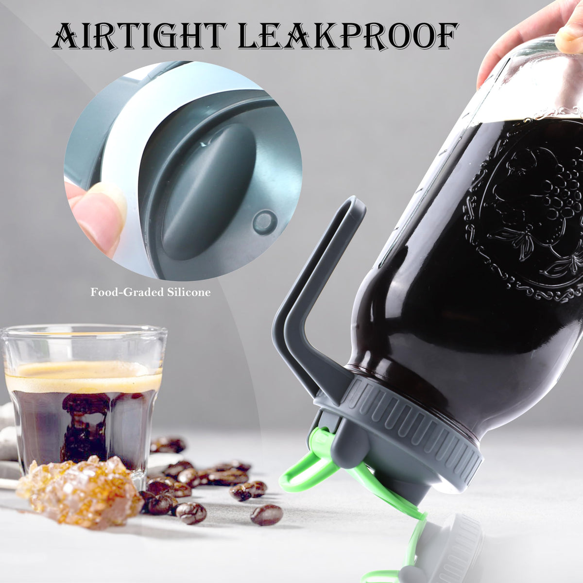 • Q: How does the leak-proof feature work? A: The Mason Jar features a silicone seal that ensures it does not leak, even when shaken upside down. The top flip cap has a secure snap fit closure to prevent leaks as well.
