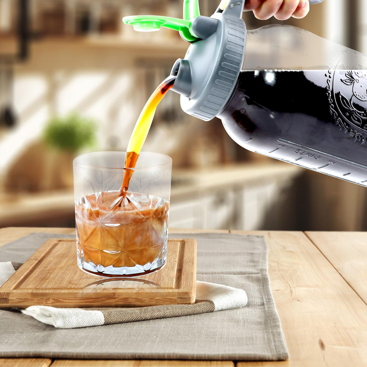 • Q: How much liquid can the Mason Jar hold? A: The Mason Jar can hold up to 64 ounces, which is equivalent to 2 quarts, making it ideal for preparing large batches of cold brew coffee or iced tea.