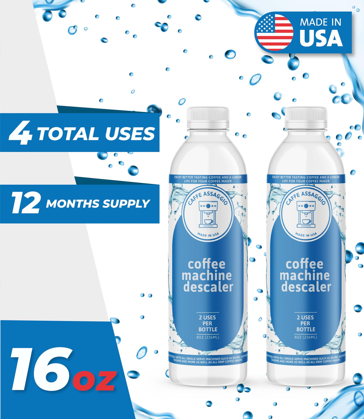 • Q: Is this descaling solution compatible with all coffee machines? A: Yes, this descaling solution is universally compatible with leading brands such as Keurig, Nespresso, Breville, and Delonghi.