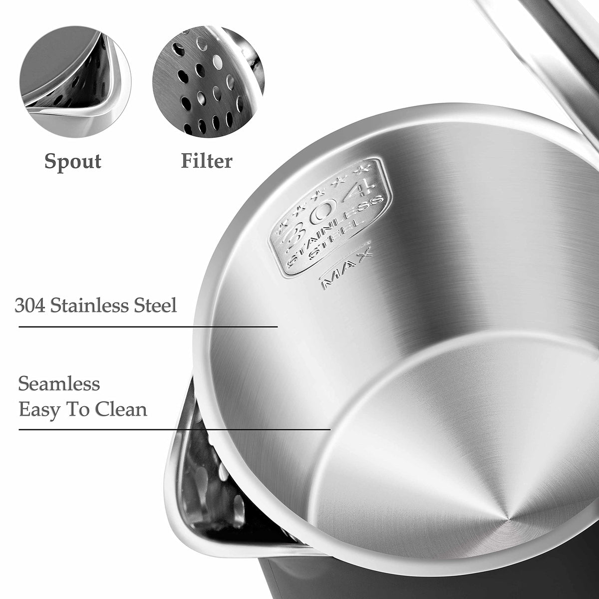 - Q: What materials is the kettle made from? A: The Dezin Electric Kettle is made from food-grade 304 stainless steel for the inner components, including the lid, spout, and filter, ensuring no metallic flavor transfers to the water.