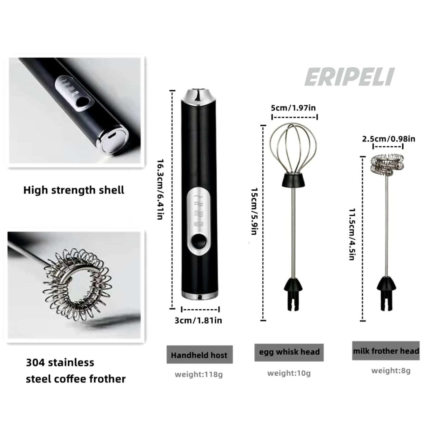 Eripeli Hand Blender Coffee Frother Milk Frother Usb Rechargeable Electric Foam Maker For Cappuccino Whisker Egg Beater, Black