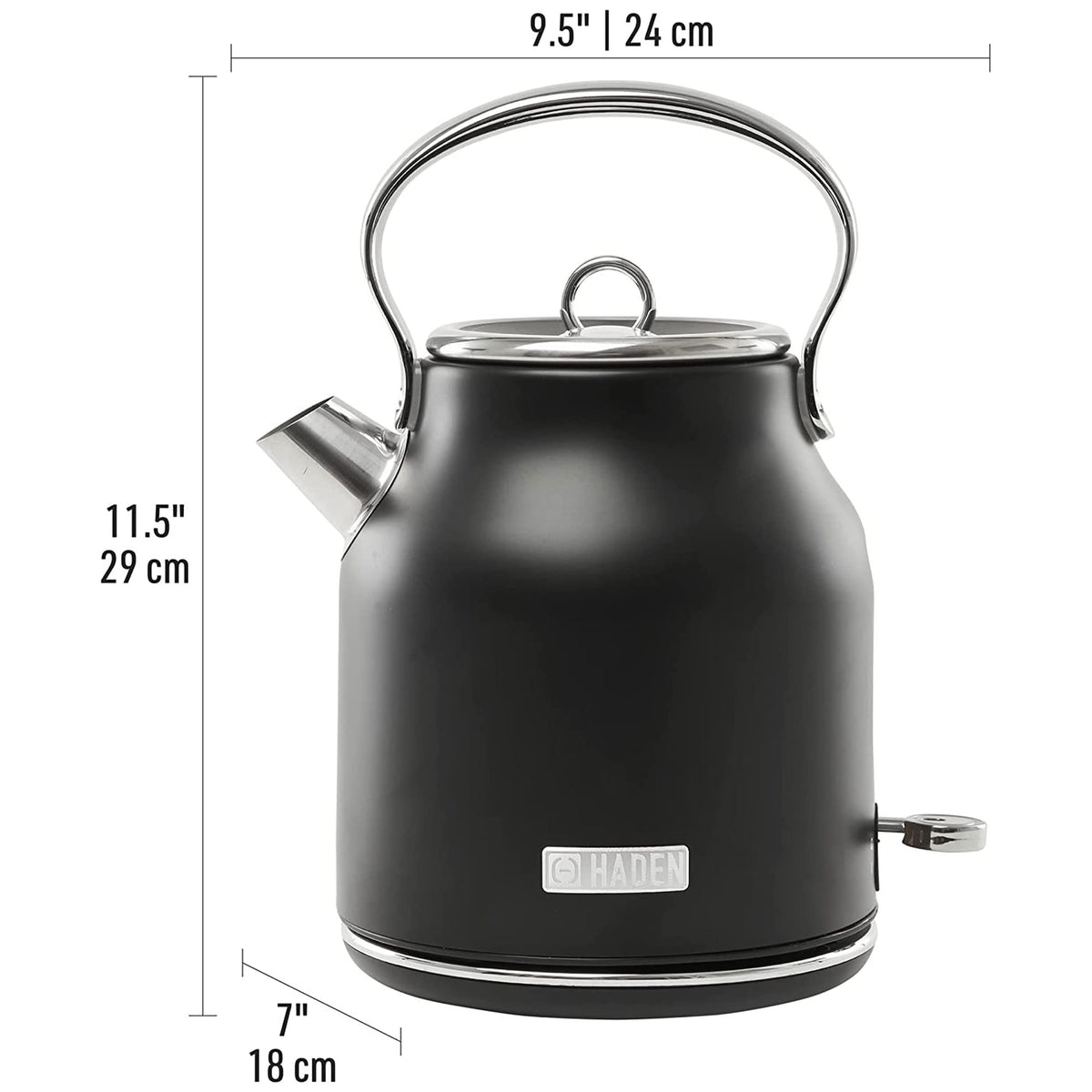 - Q: What design elements does the Haden Heritage Electric Kettle feature? A: The kettle showcases a classic design with modern finishes and a sophisticated black and chrome hue.
