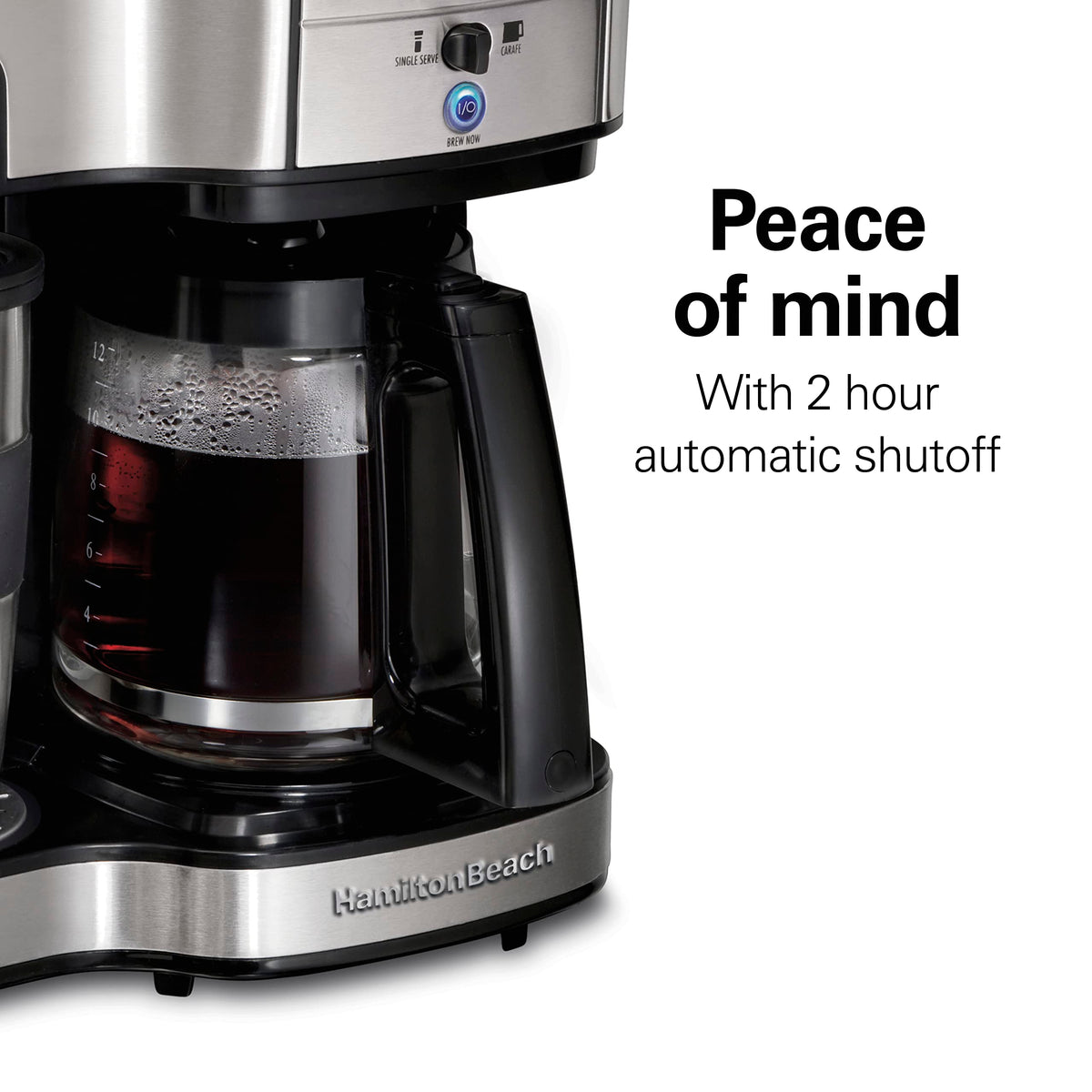 Hamilton Beach 2-Way 12 Cup Programmable Drip Coffee Maker & Single Serve Machine, Glass Carafe, Auto Pause And Pour, Black (499