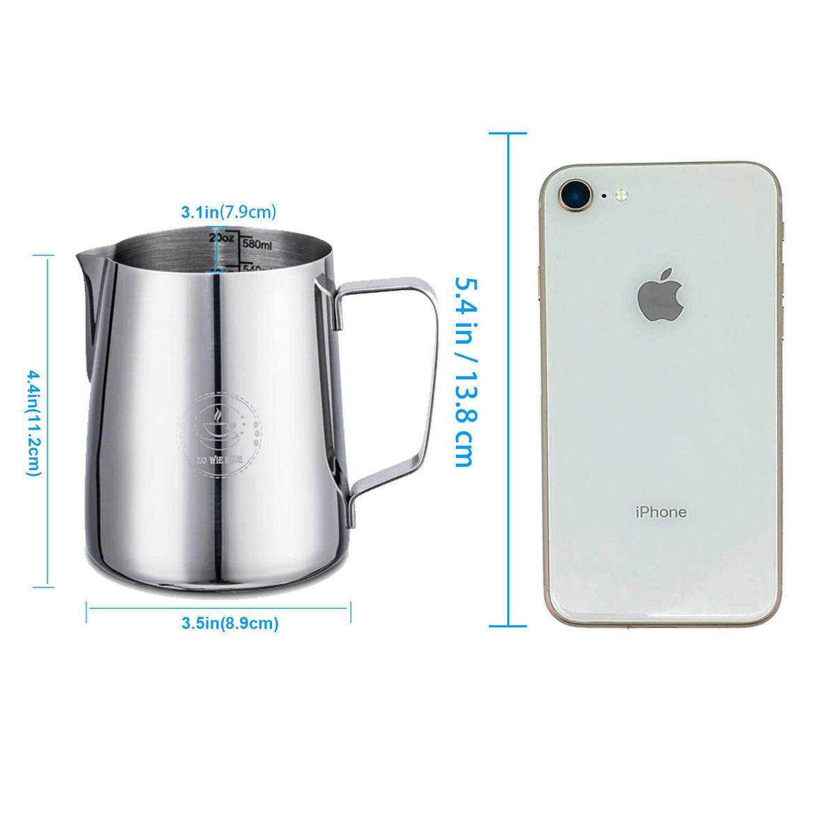 Milk Frothing Pitcher 20Oz,Espresso Steaming Pitcher 20Oz,Espresso Machine Accessories,Milk Frother Cup 20Oz,Milk Coffee Cappucc