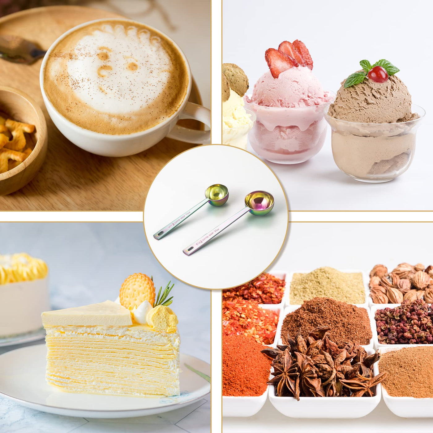 Premium coffee scoop set set of 2 Metal stainless steel long handle coffee scoop measuring coffee spoons contains 1 tablespoon (15 ml) and 2 tablespoons (30 ml) multicolor spoon.