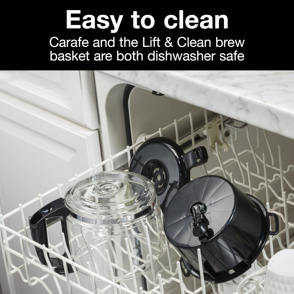 • Q: Is the coffee maker easy to clean? A: Yes, the Proctor Silex Coffee Maker is designed for easy cleaning, with a Lift & Clean brew basket and a glass carafe that are both dishwasher safe.