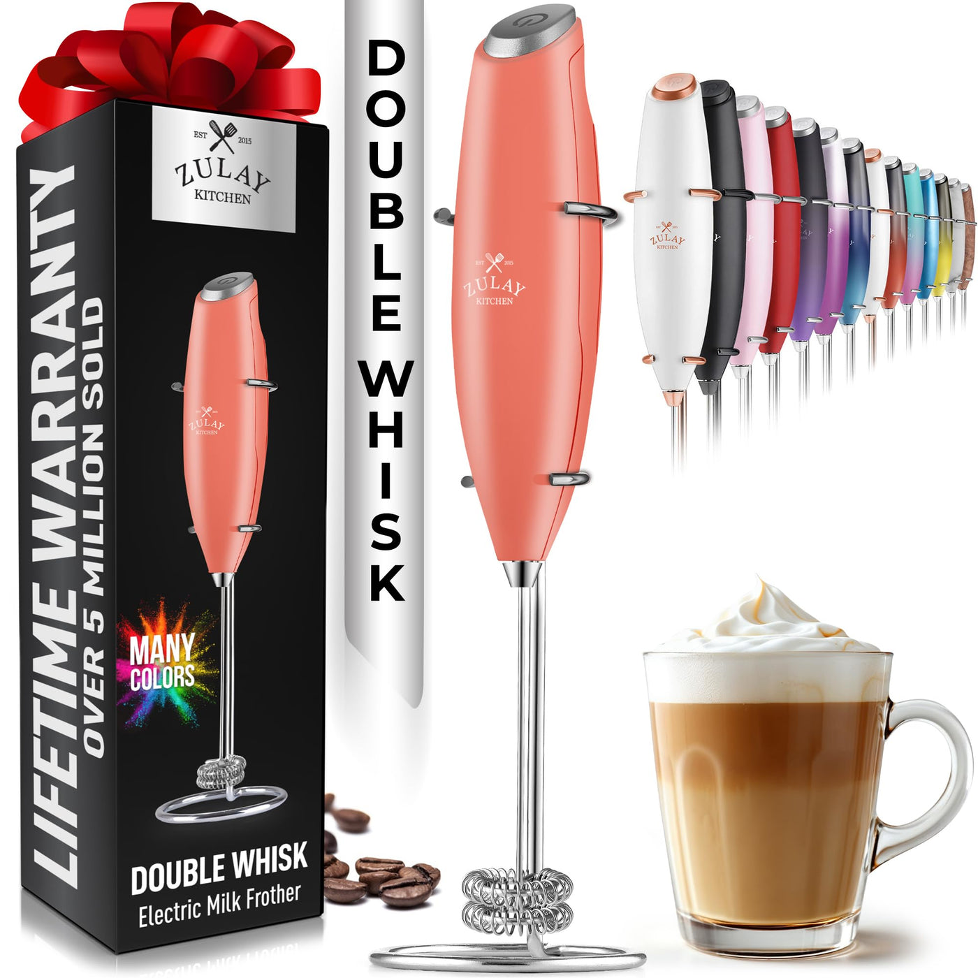 Zulay Kitchen Double Whisk Milk Frother - Handheld Foam Maker for Coffee, Lattes, Matcha, Hot Chocolate & Cappuccinos - Whip Cre