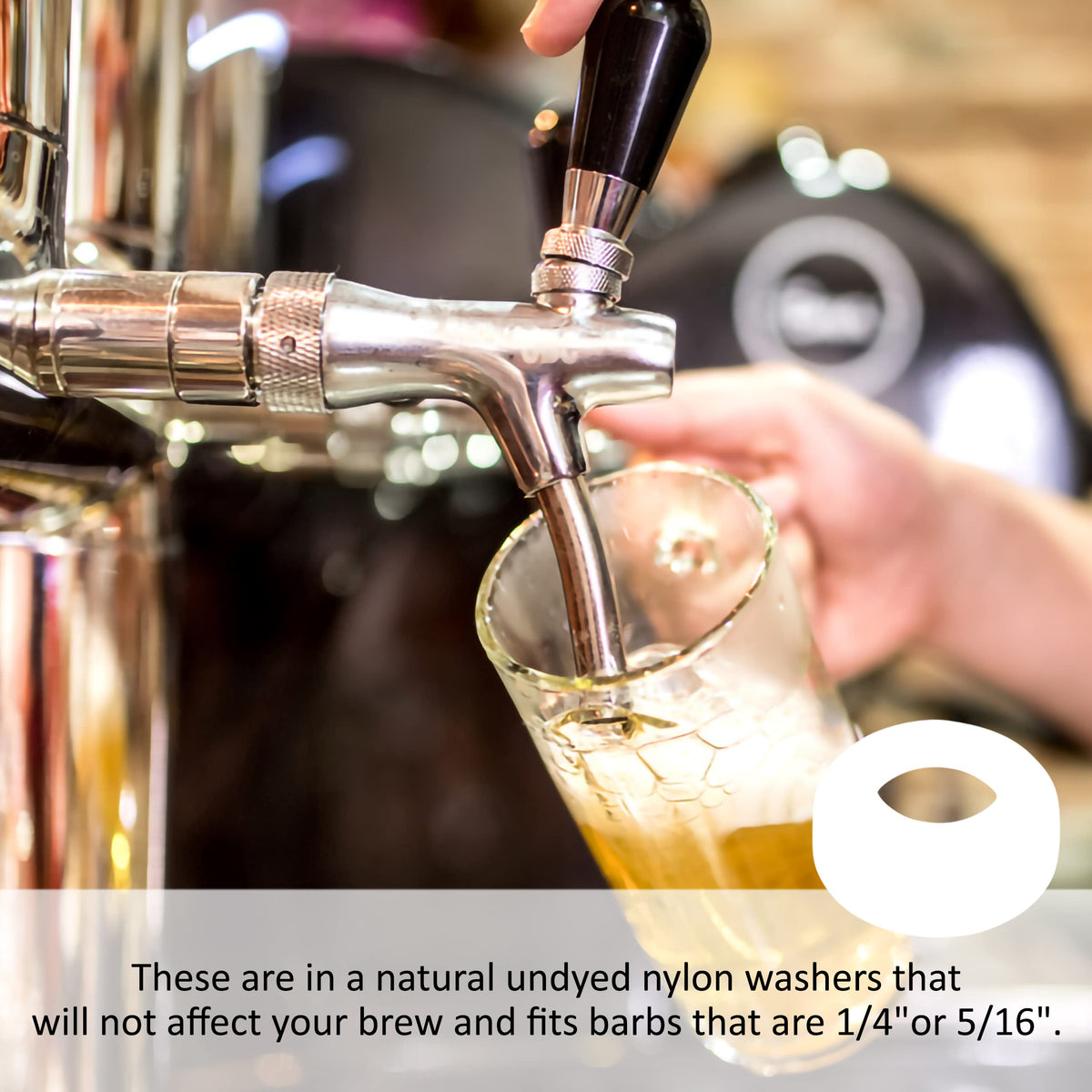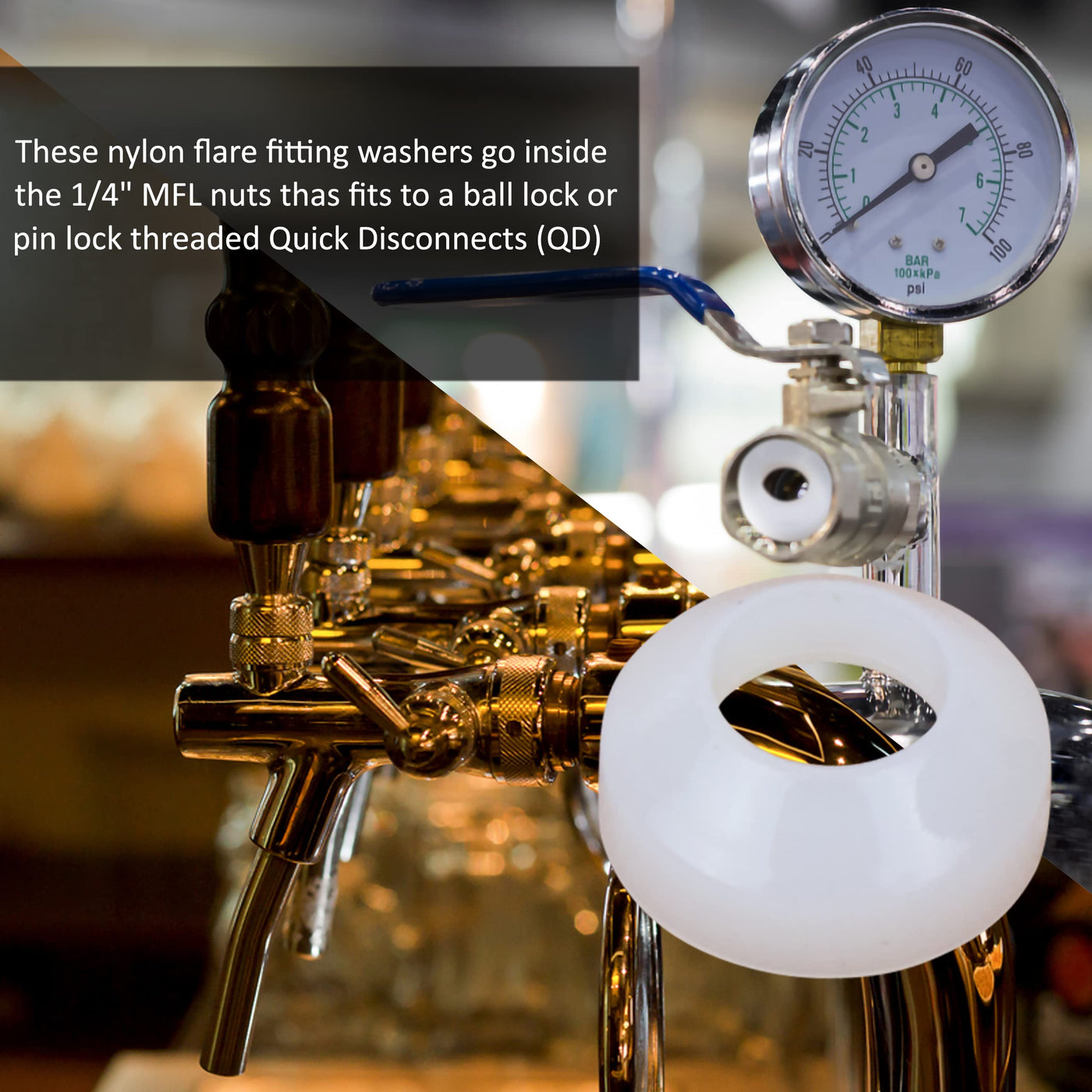 • Q: Are these washers compatible with all 1/4-inch flare connections? A: Yes, these washers are universally compatible with most standard 1/4-inch flare connections, making them ideal for kegerators, homebrewing setups, and various beverage systems.