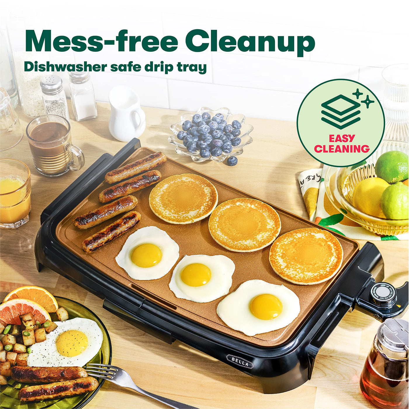- Q: Is the BELLA Griddle easy to clean? A: Yes, the BELLA Griddle features a healthy-eco non-stick coating that ensures hassle-free cleanup.