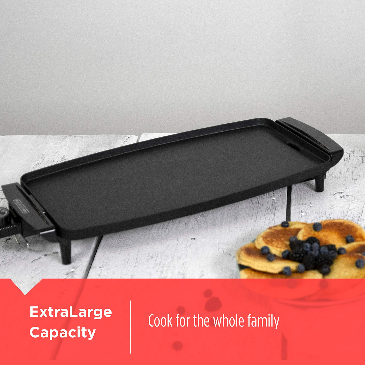 - Q: What safety features does this griddle have? A: The griddle is equipped with cool touch plastic handles, ensuring safe handling even when cooking at high temperatures.