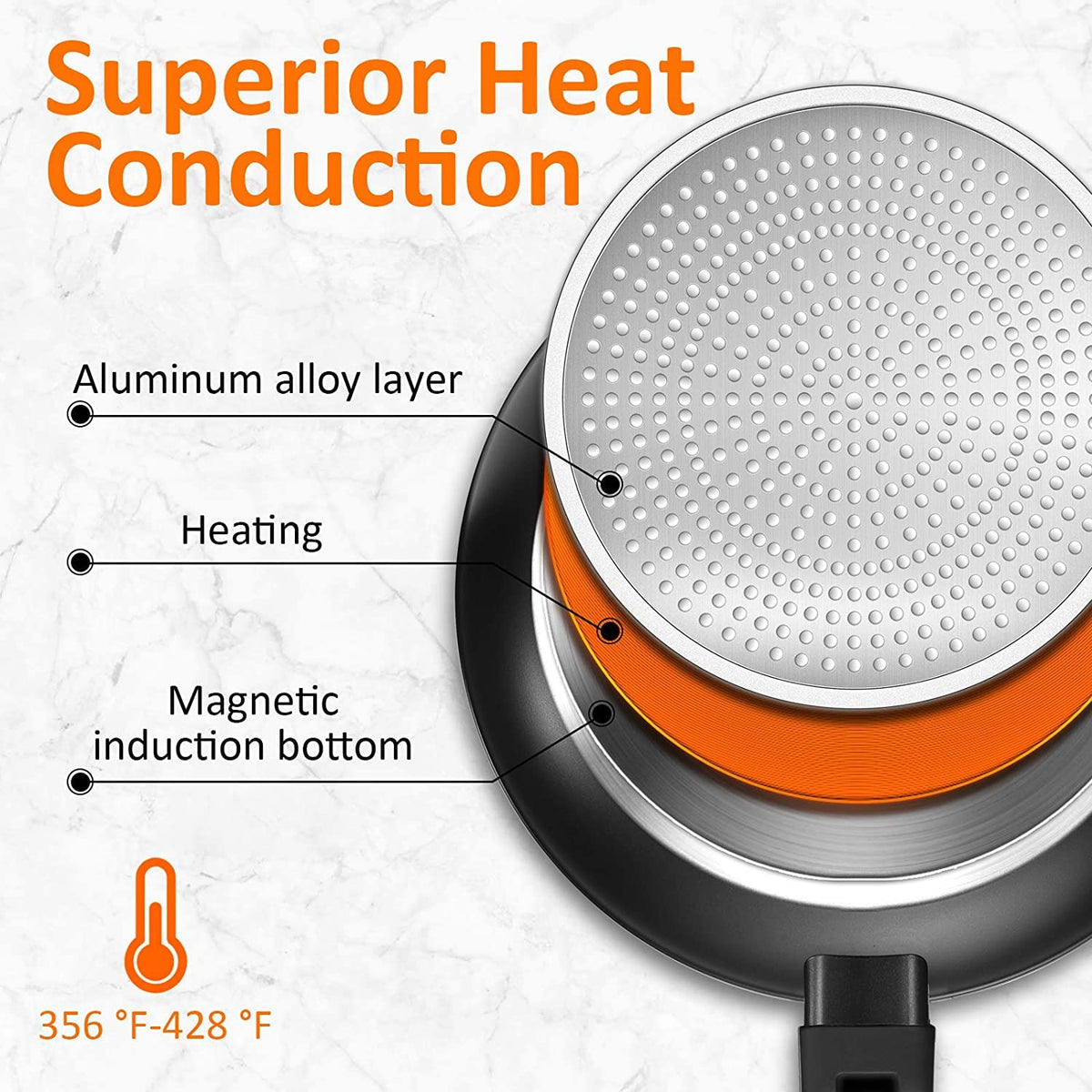• Q: Can I use high heat when cooking with these pans? A: It is recommended to avoid high-temperature settings, as they may impair the nonstick performance of the pans. Cooking on low to medium heat is ideal.