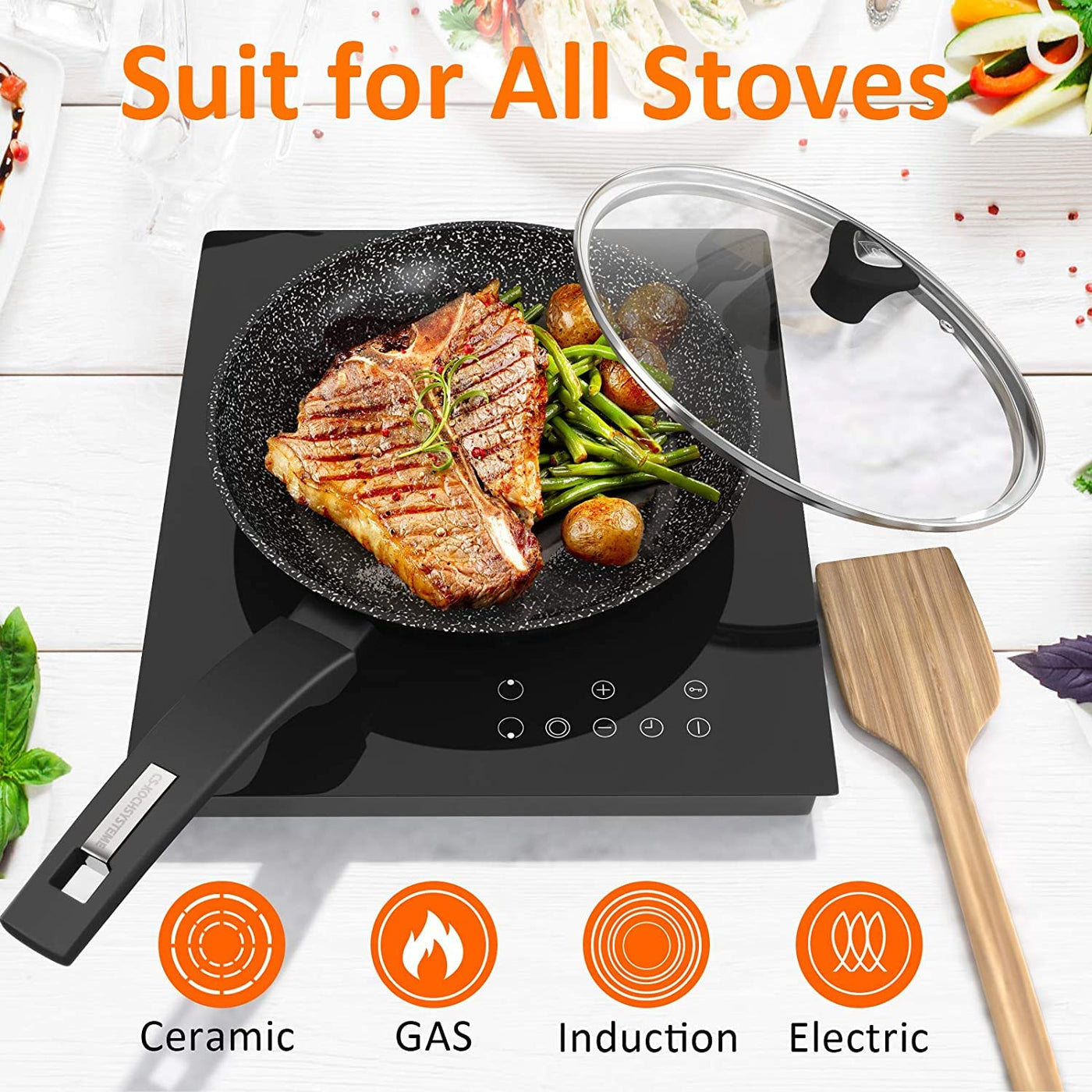 • Q: Are these frying pans suitable for all stovetops? A: Yes, the frying pan sets are compatible with all stovetops, including induction cooktops.