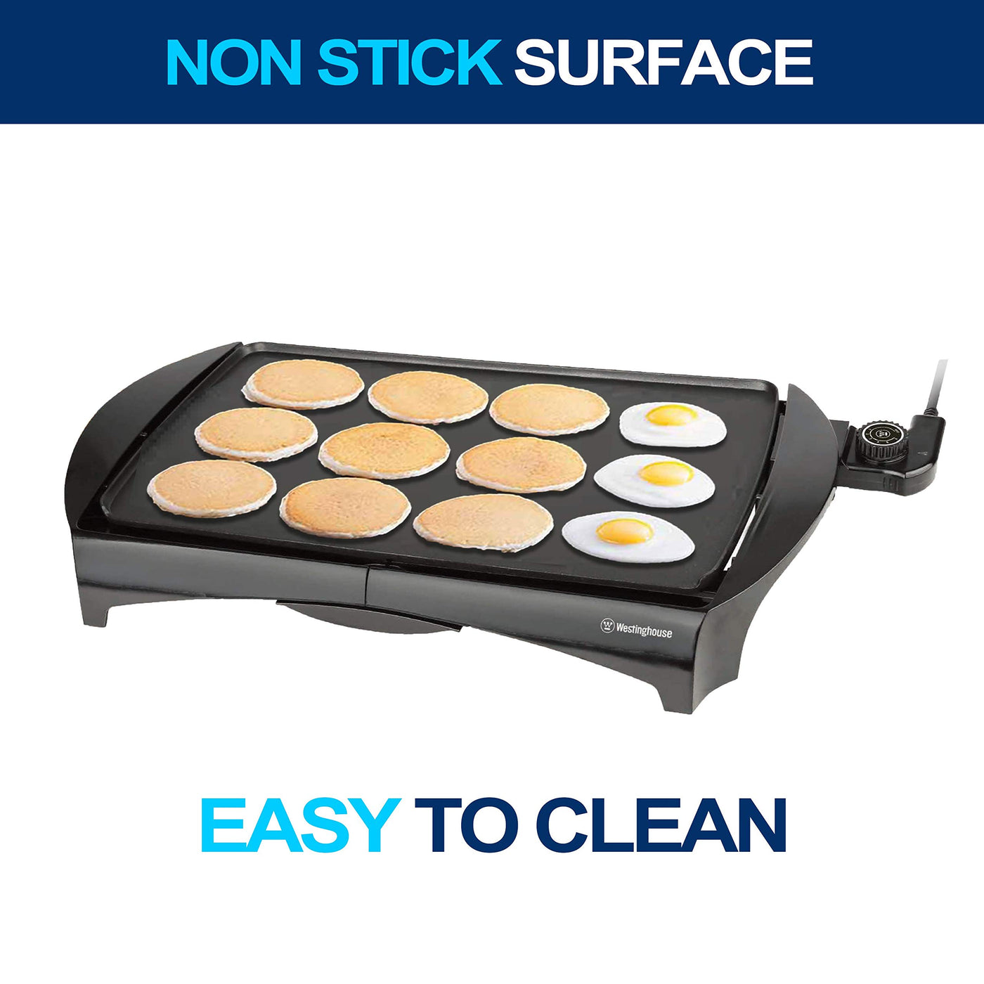 • Q: Is the griddle easy to clean? A: Yes, the Westinghouse griddle has a nonstick surface and is dishwasher safe, making cleanup easy and convenient.