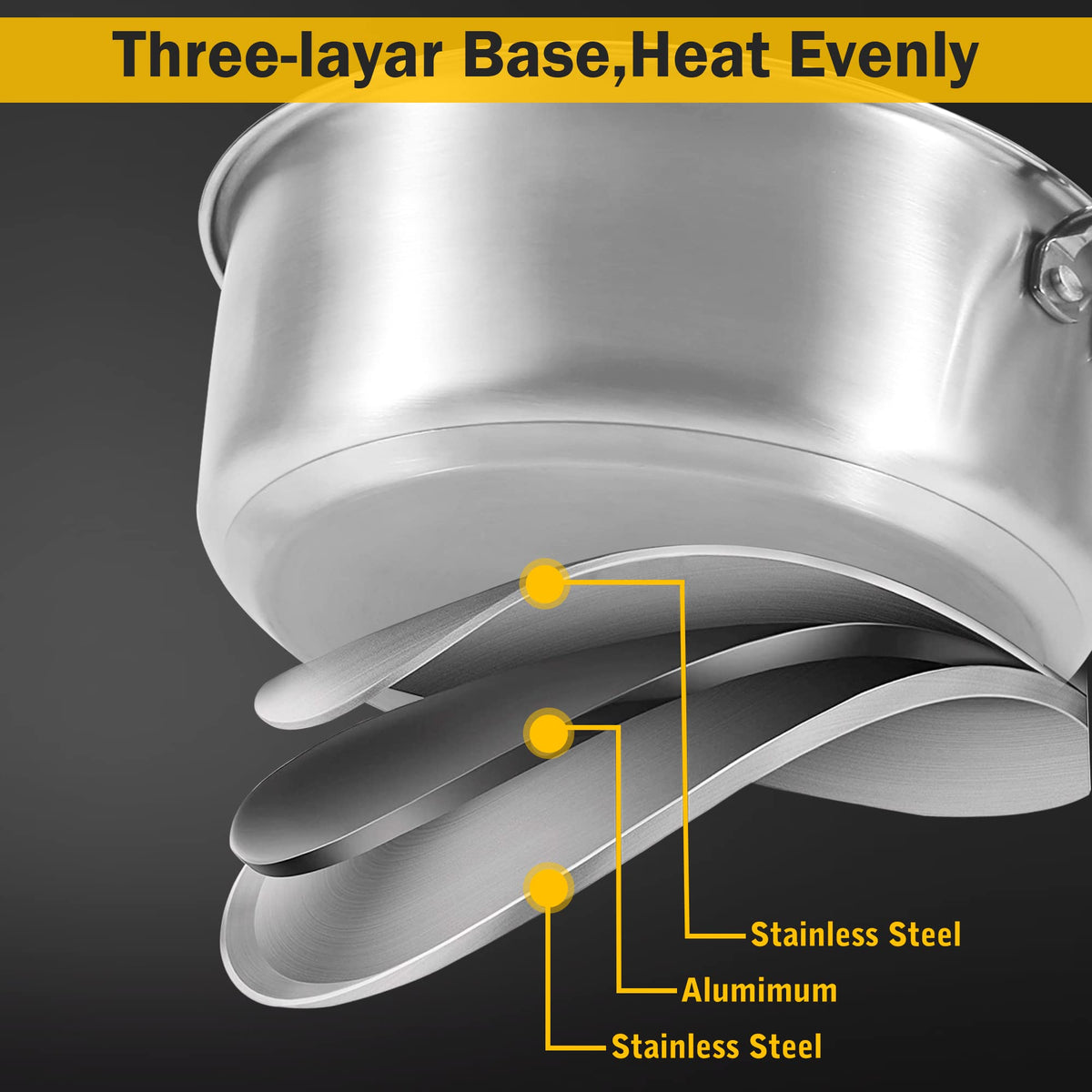 Wodillo Stainless Steel Cookware Set, 6-Piece Pots and Pans Set, Kitchen Induction Pots Set, Works with Electric and Gas Cooktop