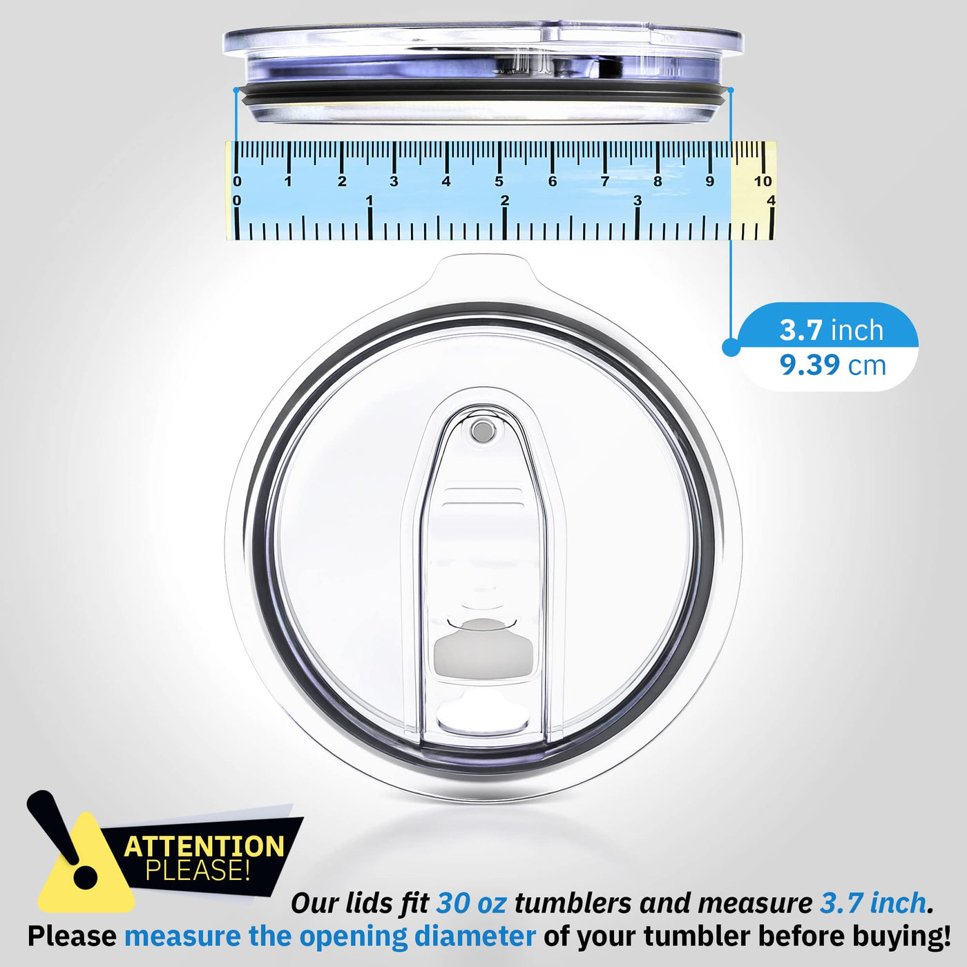 - Q: What are the dimensions of the Yeti 30 oz replacement lid? A: The Yeti 30 oz replacement lid has a diameter of 3.7 inches.