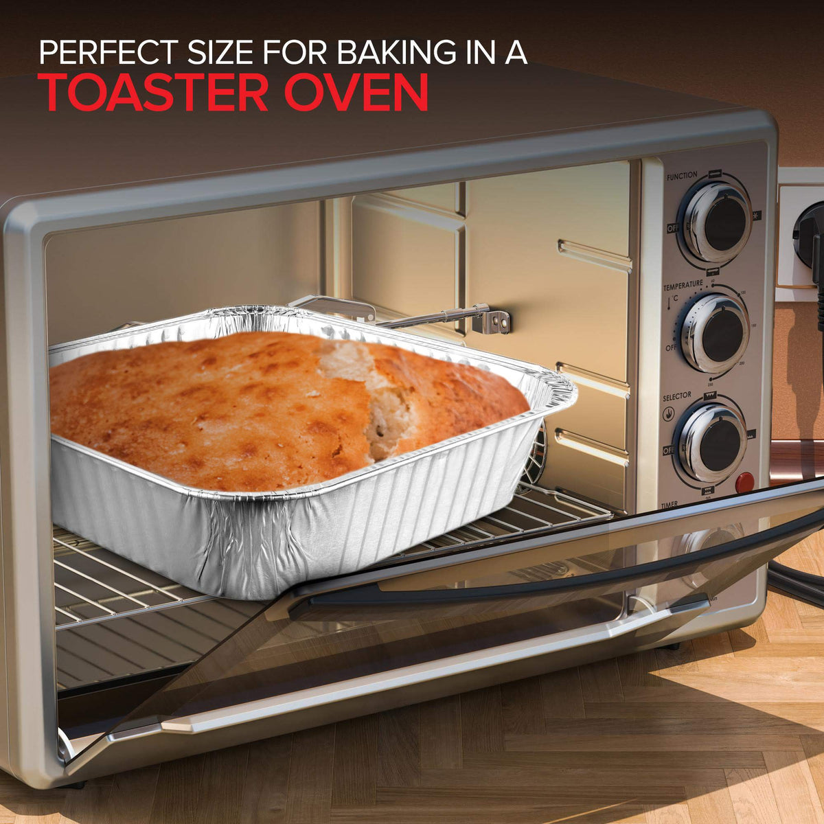 • Q: Can these foil pans be used in the oven? A: Yes, these foil pans are oven-safe and can be used for baking cakes, brownies, lasagna, and casseroles.