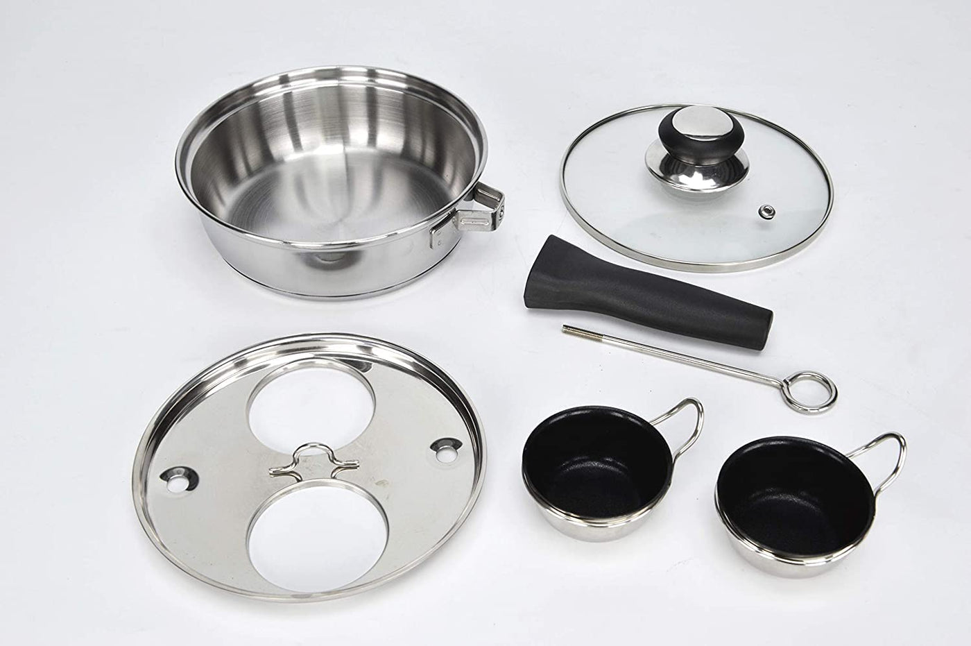 - Q: What makes this egg poacher different from others on the market? A: Unlike many other poacher pans, this one features a durable stainless steel body, a PFOA-free non-stick coating, and a user-friendly design with a quick-cool bakelite knob.