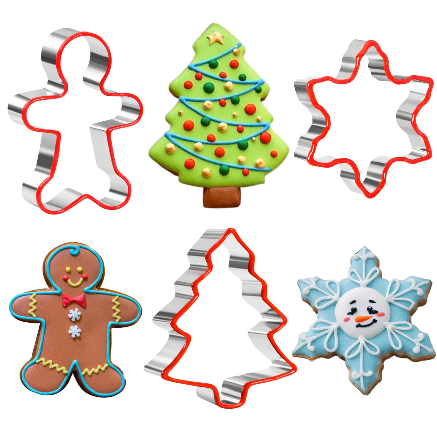 Crethinkaty 3 PCS Christmas Cookie Cutter Set,Gingerbread Man,Snowflake,Christmas Tree Shape with Soft PVC Edge Xmas Cookie Cutt