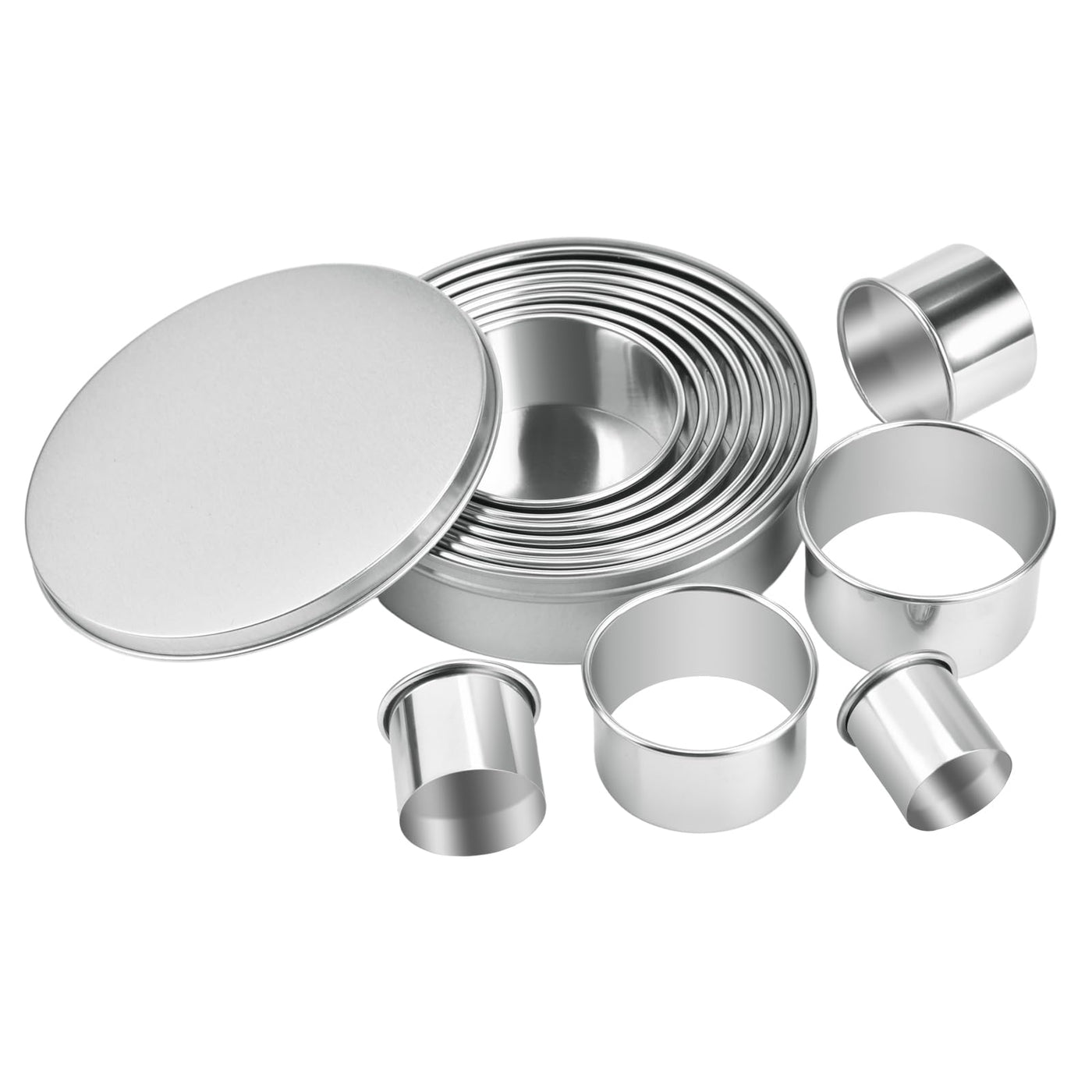 - Q: How many cookie press sizes are included in the set? A: The set includes 12 graduated sizes of cookie presses, ranging from 1 inch (2.6 cm) to 4.4 inches (11.3 cm).