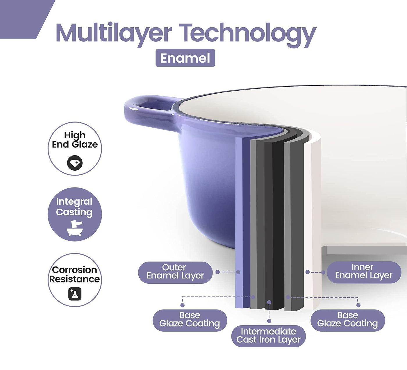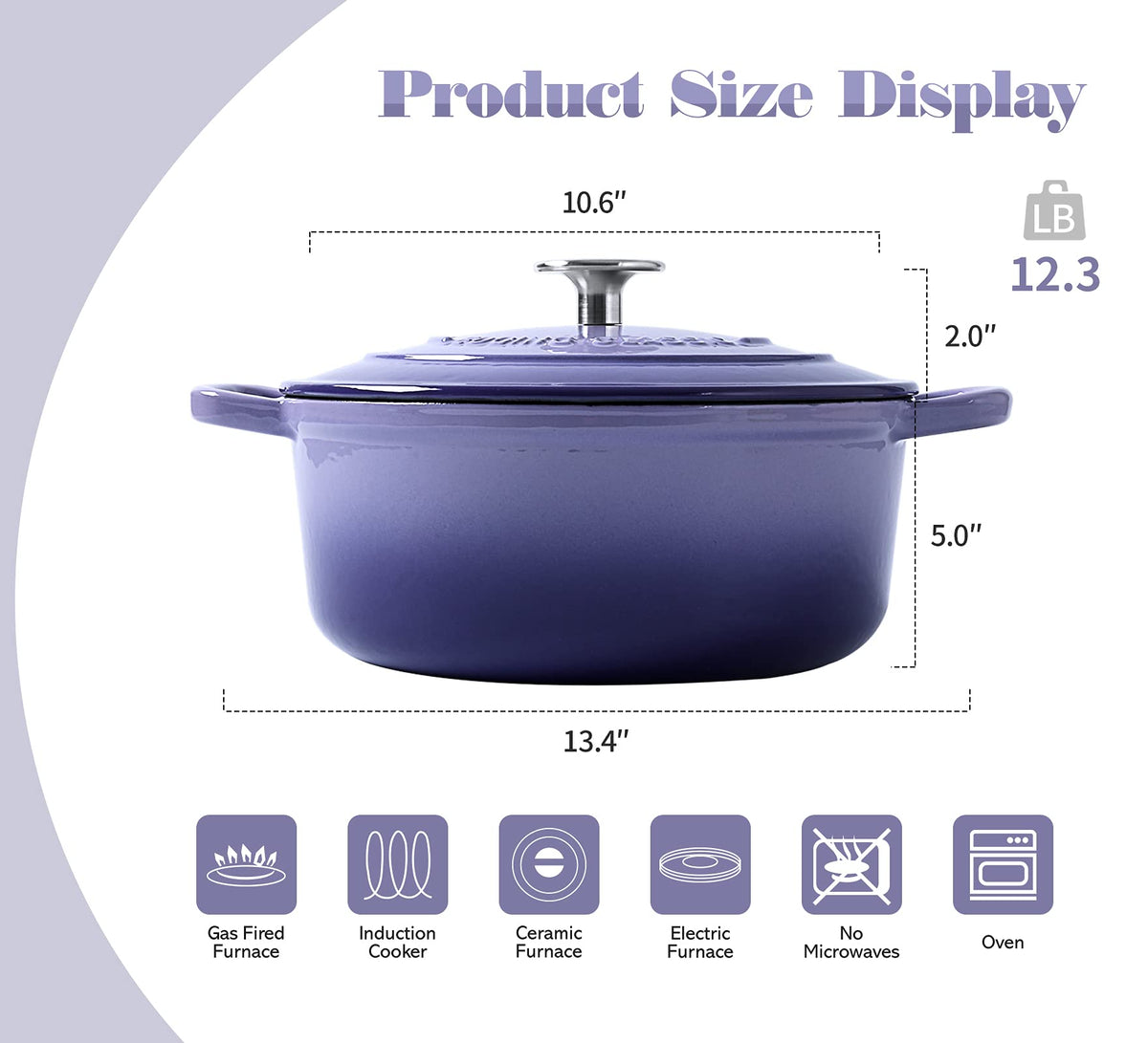Edging Casting Enameled Cast Iron Covered 5.5 Quart Dutch Oven With Dual Handle, Purple