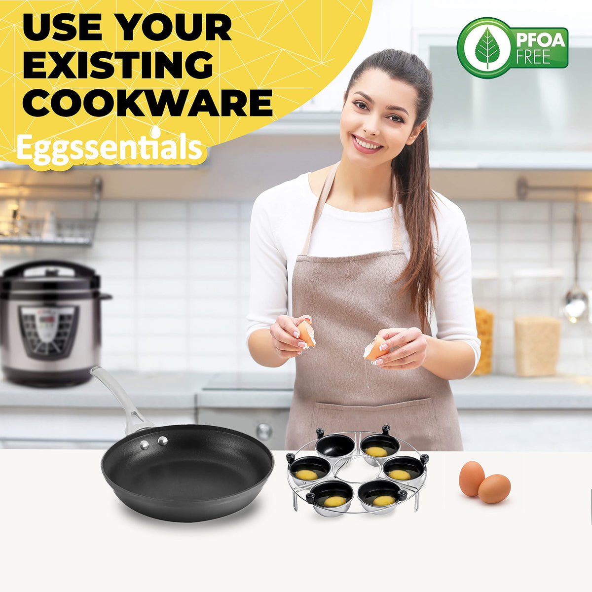 Eggssentials Egg Poacher Insert Stainless Steel Poached Egg Cooker Eggs Poaching Cup Pfoa Free Egg Poachers Nonstick, 9 Inches R
