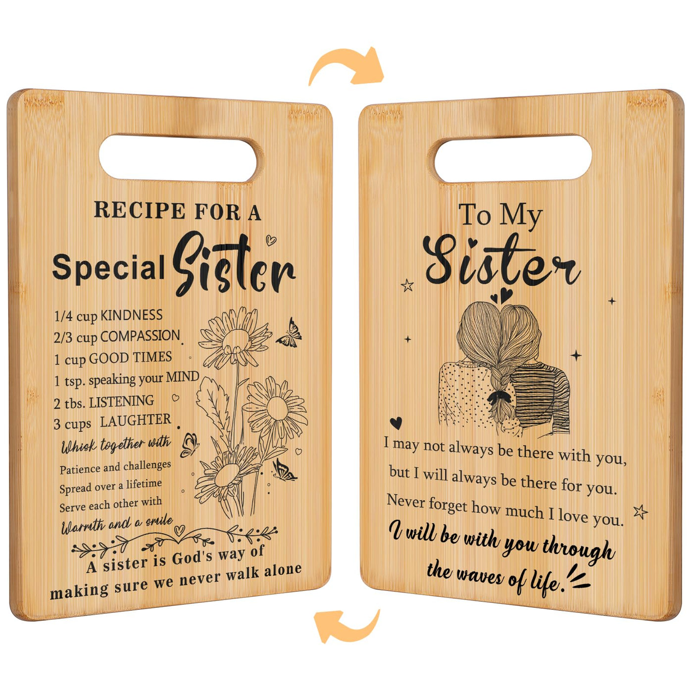 Gifts for Sister, Sister Birthday Gifts from Sisters - Unique Engraved Cutting Board Decorations Present, Best Friendship Soul Gifts for Women Bestie Friend