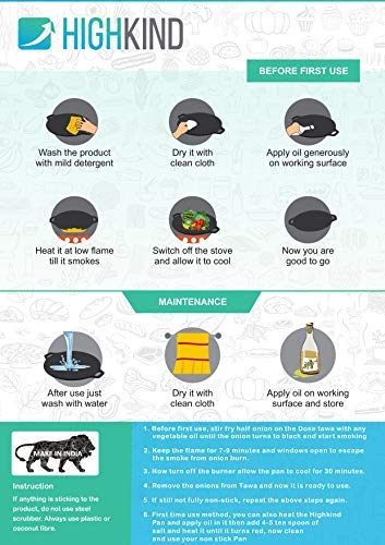 • Q: Does the tawa come pre-seasoned? A: Yes, the Highkind Cast Iron Dosa Tawa comes pre-seasoned for immediate use.
