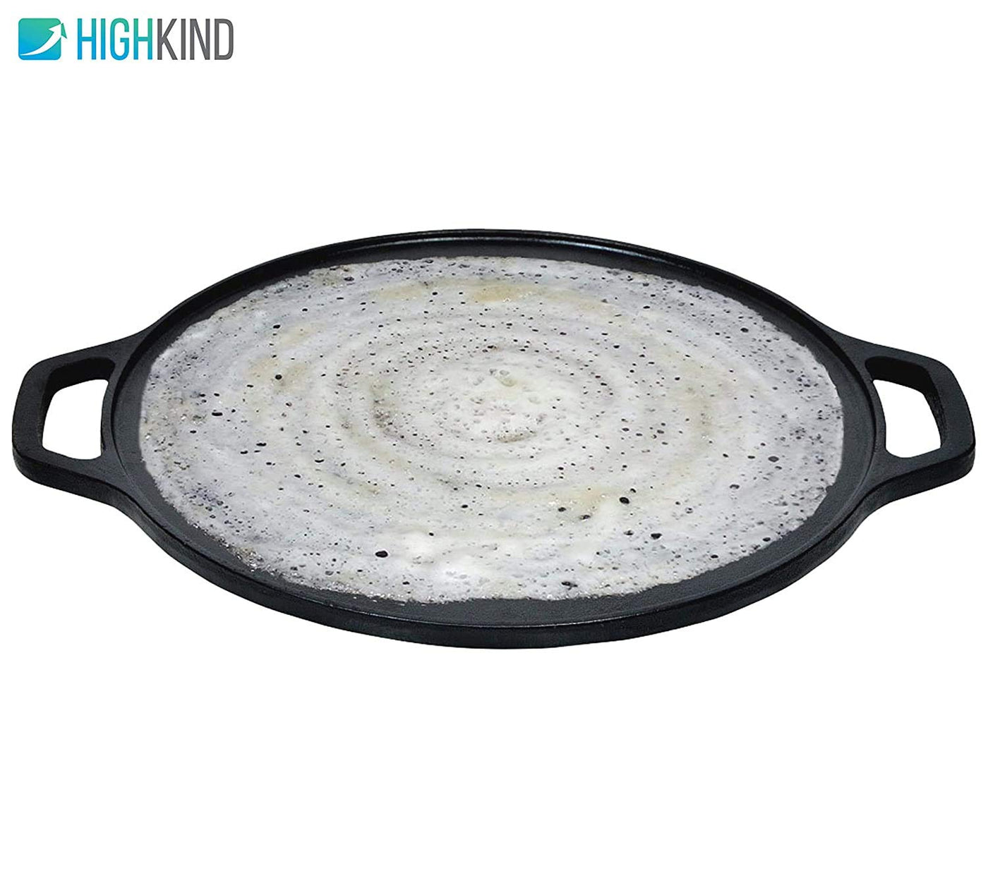 Highkind Pre-Seasoned Cast Iron Dosa Tawa 12 Inches, Perfect For Cooking On Gas, Induction And Electric Cooktops