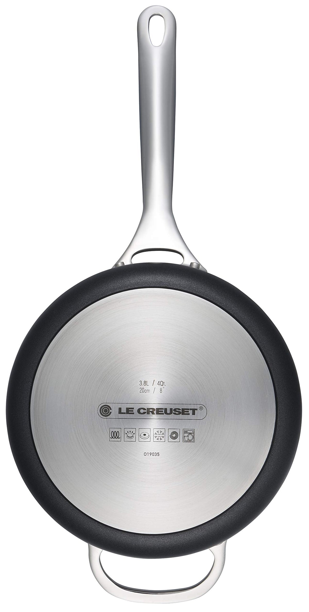 • Q: What features enhance the cooking experience with this saucepan? A: The saucepan features a textured interior for better browning and searing, and ergonomic handles for comfortable movement.