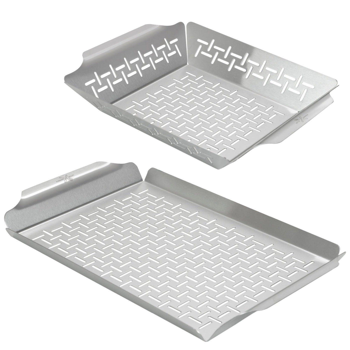 Little Griddle Gt-525 Grill Pan And Grill Basket Set, High Sidewalls With Built-In Handles, Stainless Steel & Vented Design - Si