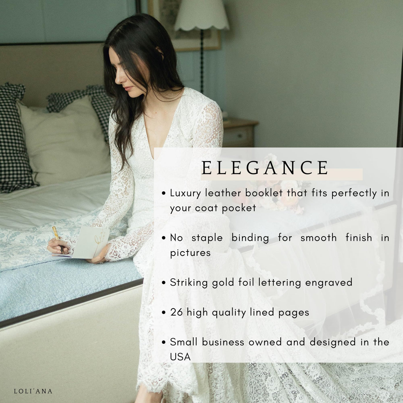 - Q: What unique features do these vow books offer? A: The vow books feature luxurious aesthetics with gold foil lettering, smooth leather, non-creasing pages, and a compact design.