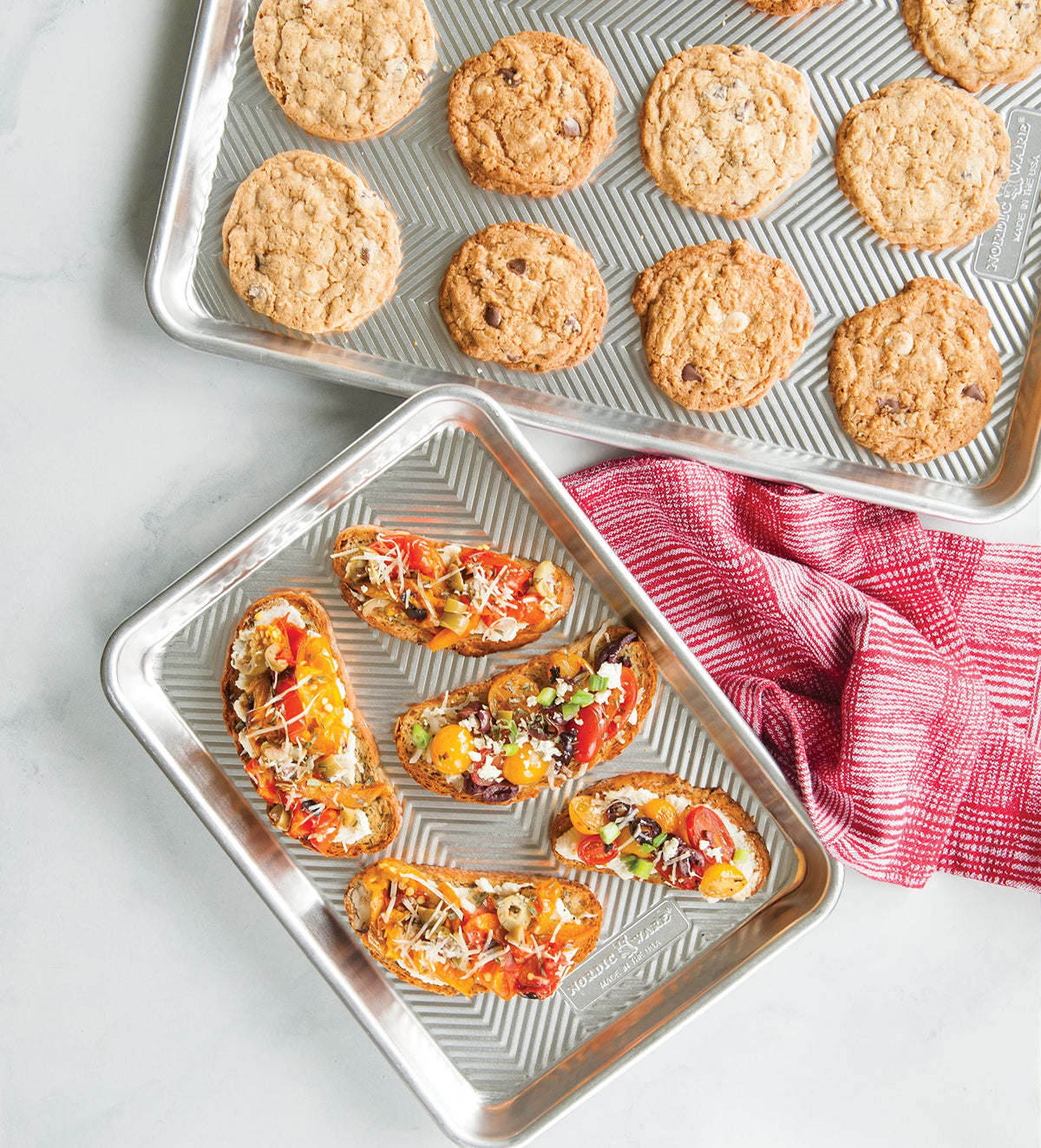 • Q: What types of recipes can I use the Nordic Ware Prism Baking pans for? A: The Nordic Ware Prism Baking pans are versatile and can be used for baking cookies, sheet cakes, roasted vegetables, and more.