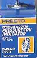 • Q: How does the Presto Tru Indicator function? A: The Presto 9914 Tru Indicator sits on the vent pipe of the pressure cooker and helps maintain the pressure levels inside the cooker or canner during use.