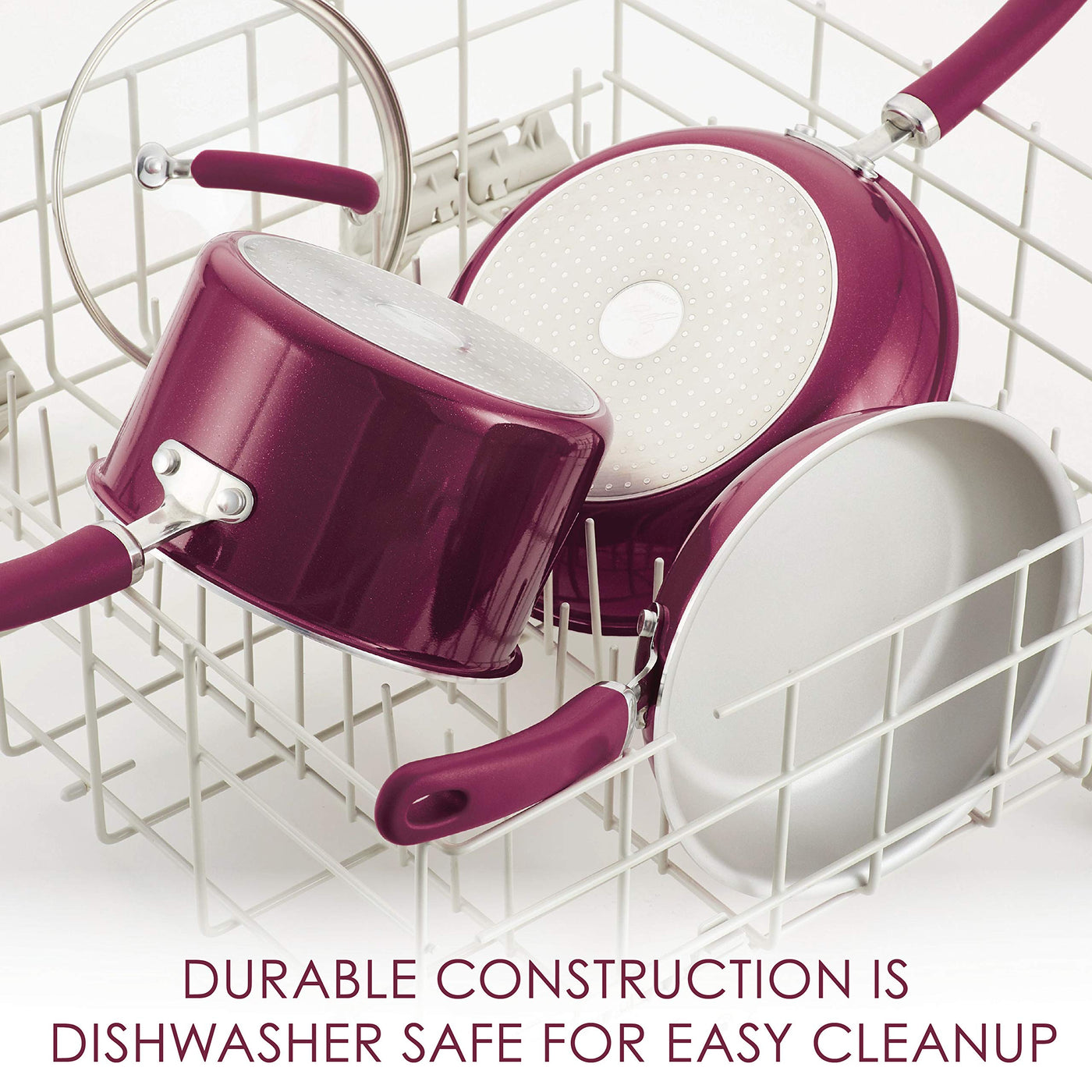 • Q: How does the shimmer finish of the frying pan enhance its appearance? A: The frying pan features an eye-catching burgundy shimmer finish that adds a vibrant touch to your kitchen.
