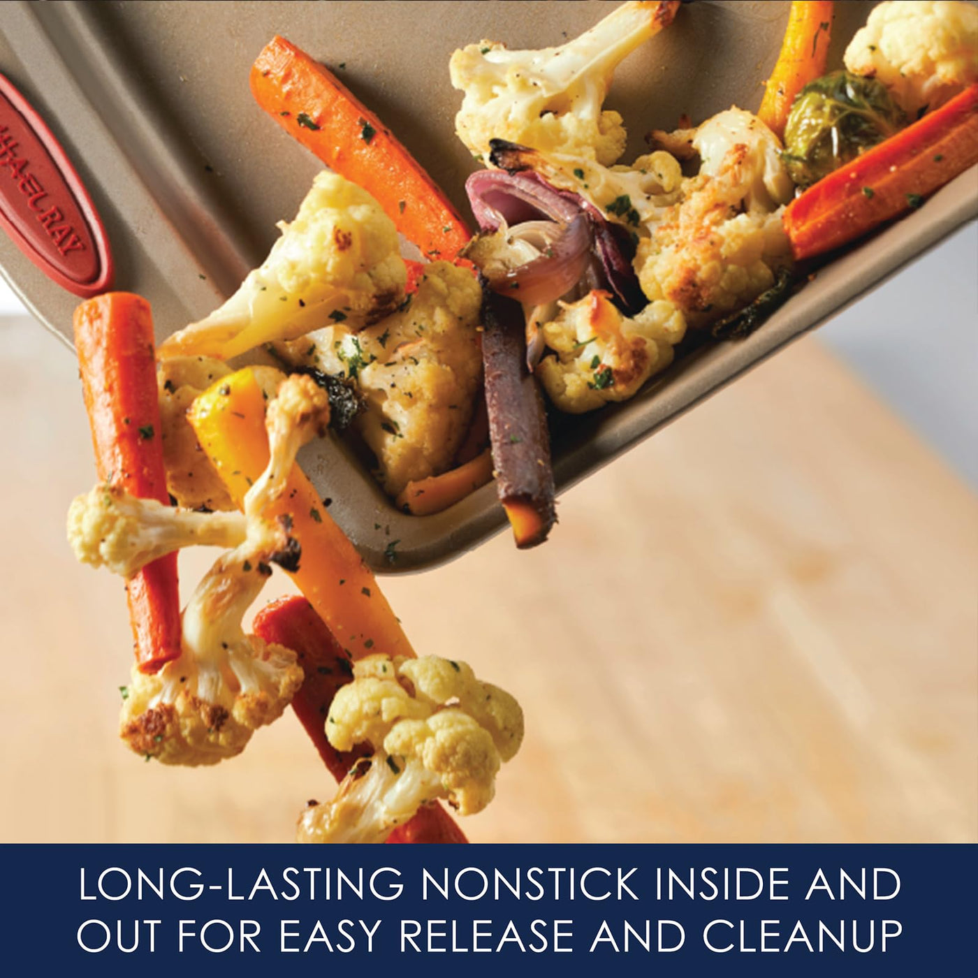 - Q: What materials are used in the Rachael Ray Cucina Nonstick Bakeware Set? A: The Rachael Ray Cucina Nonstick Bakeware Set is constructed from heavy gauge steel for durability and long-lasting performance.