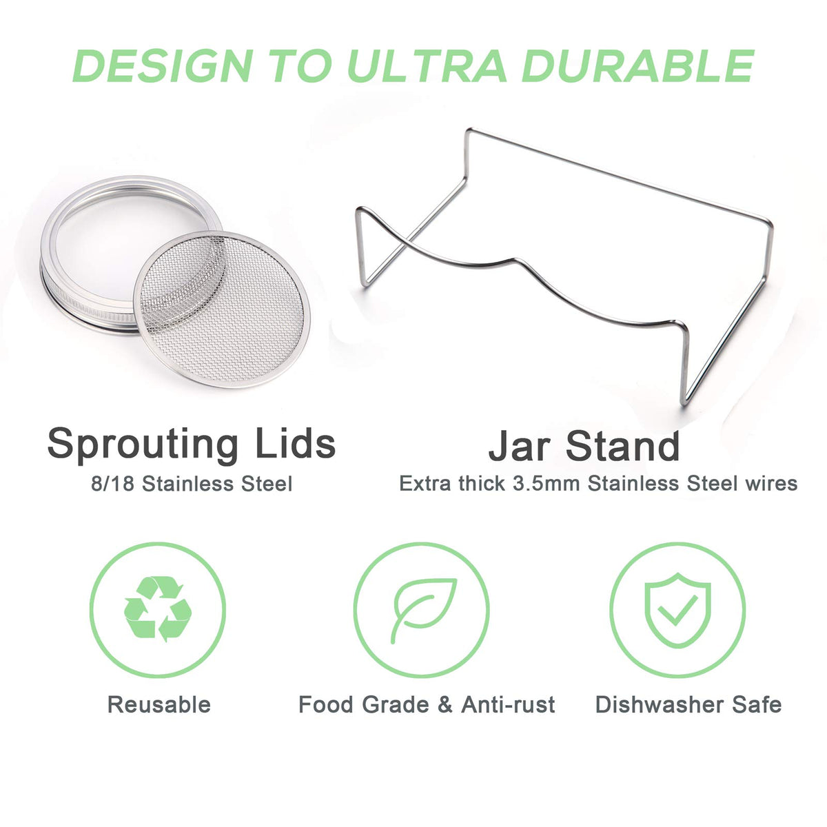 • Q: Is the material used in the kit safe for food? A: Yes, the sprout lids are made from food-grade 316 stainless steel, ensuring they are rust-proof and safe for food use.