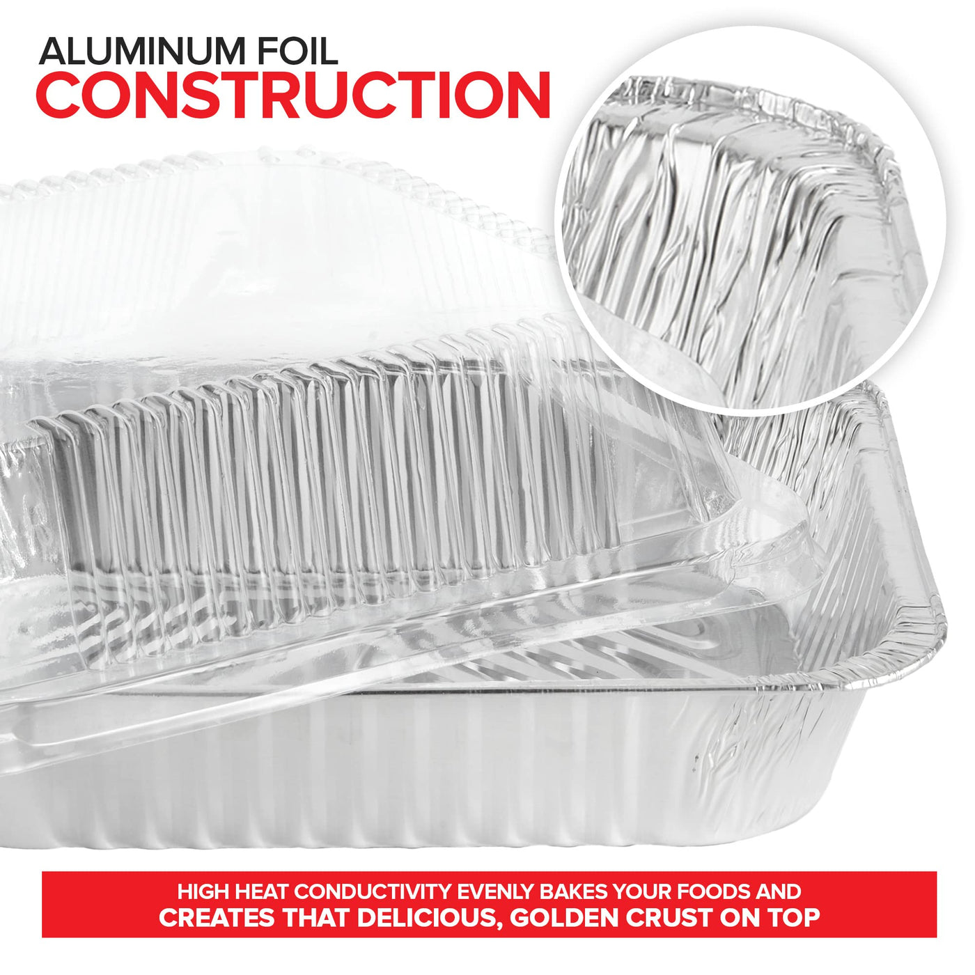 - Q: Are the lids included with the baking pans? A: Yes, each pack includes plastic lids that snap onto the foil baking pans to secure and protect your food during transport.