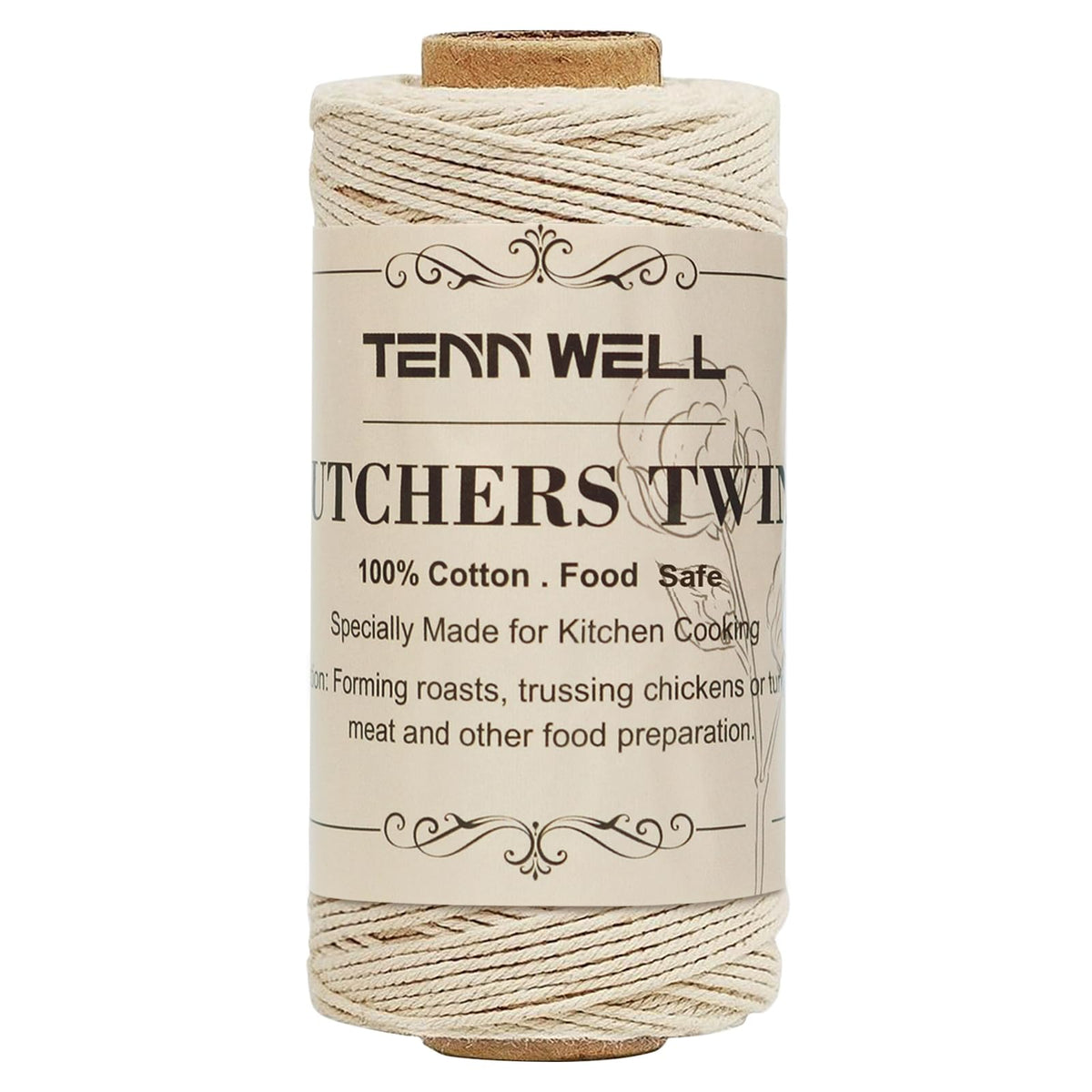 Tenn Well Butchers Cooking Twine - 328ft 3Ply 1mm Cotton String, Food Safe, White, Model TW002MX